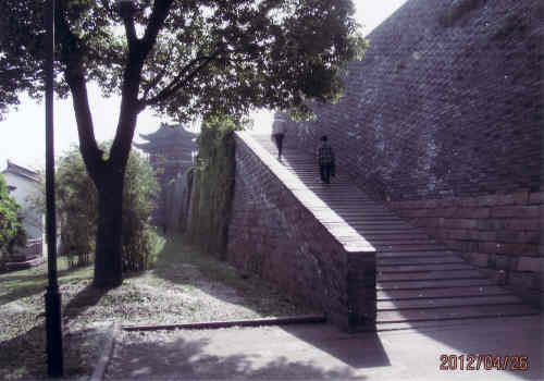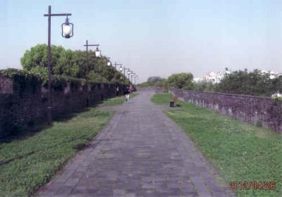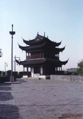蘇州の桂花公園、堀沿いに蘇州城を再現した楼閣と長城に登ることもできる