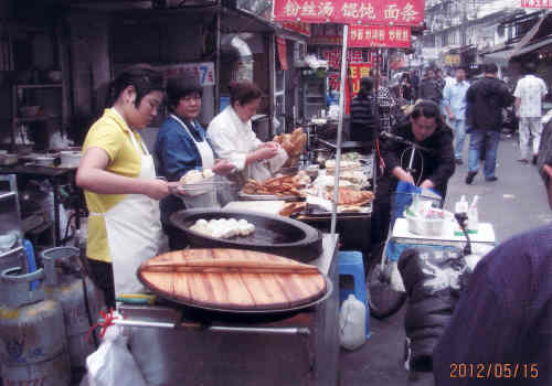 ここは昔上海(村)城と呼ばれた地域。今の上海の元となった地域です。豫園を中心とする豫園商場、豫園老街は今や上海の観光スポットになったが、その裏通りは昔のまま、日本の戦前のような生活(私の生まれる前)を送っています。毎日がお祭りの屋台が並んでいるようなものです。時間が有りましたら裏の上海をちょっと覗いて見ませんか?朝だけでなく夕方も活気が溢れてます。
