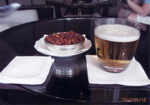 東京スカイツリーが開業しました。450mの高さの展望台に人気が集まっています。入場料が2000円+1000円=3000円です。高さも高いが料金も高い。上海の環球金融中心の展望台は高さ474mで世界一高い展望台です。料金は150元(1950円・13円/1元)現地の物価から見ると料金も世界一でしょう。この高い入場料をなんとかならないものでしょうか?70歳以上は安くなるらしいが私はまだ3年先です。そこで仕掛け人の必殺技をご披露いたします。63元(820円)と半額以下、それで揺ったりとしたソファーに座って(展望台には椅子はなし、床に座るのは禁止)、更に青島ビール(ピーナッツ付き)を飲みながら外灘の景色が眺められます。雰囲気も展望台のような人混みはなく、最高です。