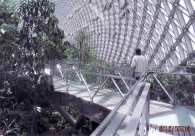 08年に完成した辰山植物園の温室は、松江区にあり上海植物園のものと比較すると3倍になった。文字通り、アジア最大規模の温室となっている。温室は3つの建物で構成され、それぞれ異なった地域の植物を栽培している。温室栽培では世界最大の菩提樹(高さ12メートル)、さらに温室栽培では世界最古(樹齢300年)のオリーブの木などがある。オリーブを中国語で言えない、書けないので発見できず。電子辞書をホテルに置いて来てしまった為。残念。