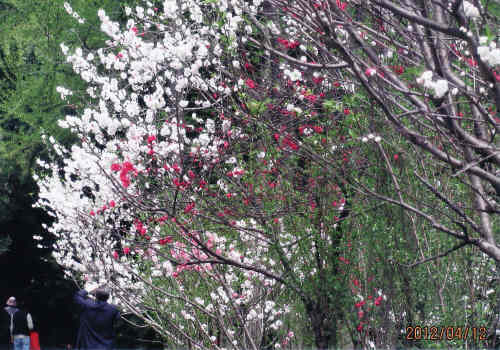 上海の魯迅公園には愛知県から来た1000人の訪中団によって植樹された1000株の「桜花園」があります。