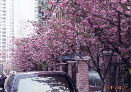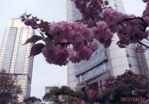 上海市中心部の南京西路にあるテレビビルの隣に桜で飾られた道がある。どこかと言うと、昔の小吃街の呉江路(現在再開発工事中)の東端から南に伸びる短い道・青海路だ。道路沿いに桜の木が21本植えてある。桜で飾られた道をゆっくり歩き、桜を楽しむことが出来ます。