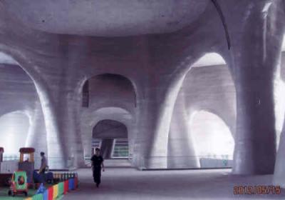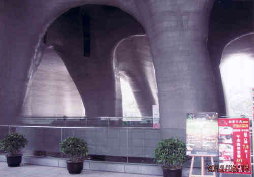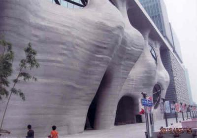 日本人建築家・磯崎新のデザインによる巨大複合ビル! 地下鉄7号線「花木路」駅3号出口を出てすぐ右手の建物です。徒歩約1分。日本人建築家・磯崎新による大樹をイメージしたようだが、洞窟みたいな雰囲気です。一階の広い面積を使っているが工事途中なのか、何も無い空間です。この企業の建物は各地域に奇抜なデザインで建てられています。