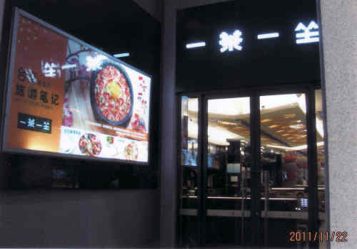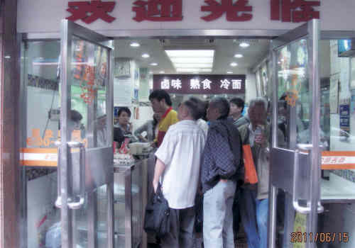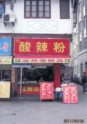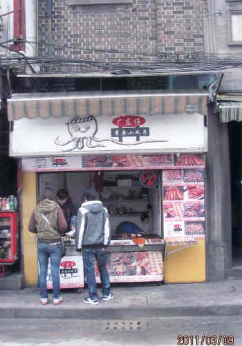 地下鉄人民広場駅を降りて、向かった先は黄河路美食街。この通りは海鮮料理のお店がたくさんあることで有名らしいんですが、私が目指すのは小吃(軽食)と呼ばれるお手軽系です。南の南京西路から、北の南蘇州路に至るまで、小さなレストラン、大きなレストランがずらりと建ち並んでいる。新鮮な海の幸が特色で、とくに夜になると、分かれ道にある牌楼が特に人目をひく。色とりどりのネオンサインで描き出された躍如とした迫真感のある大きなカニ、イセエビが人々を引き付けている。特に二大小吃店、小楊生煎館と佳家湯包が向かい会っている。生煎を買って、湯包店で二つの味を楽しむ、逆も可です。出来たてを食べる小吃の醍醐味が倍となる。