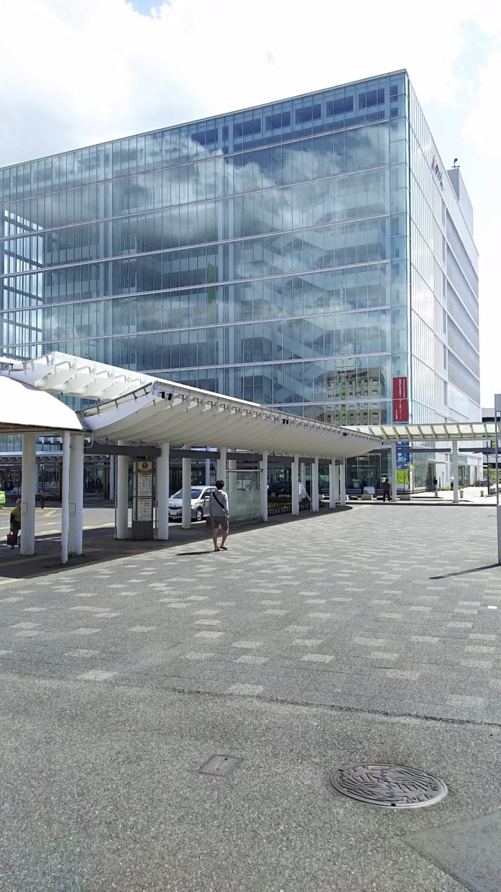 - 福井駅そば、ビル前には小松空港行きのバスが発着します。