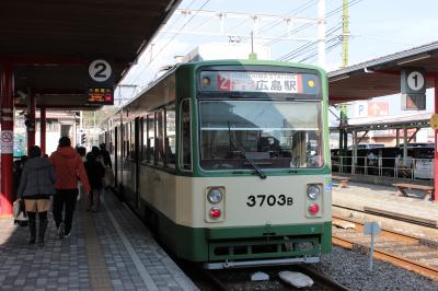私が乗った宮島線は、専用軌道と併用軌道の両方を走ります。瀬戸内の景色を眺めながら移動するのっていいんですよね。ただ、あまりの気持ちよさに居眠り。原爆ドームを見逃したのが痛かった(泣)。