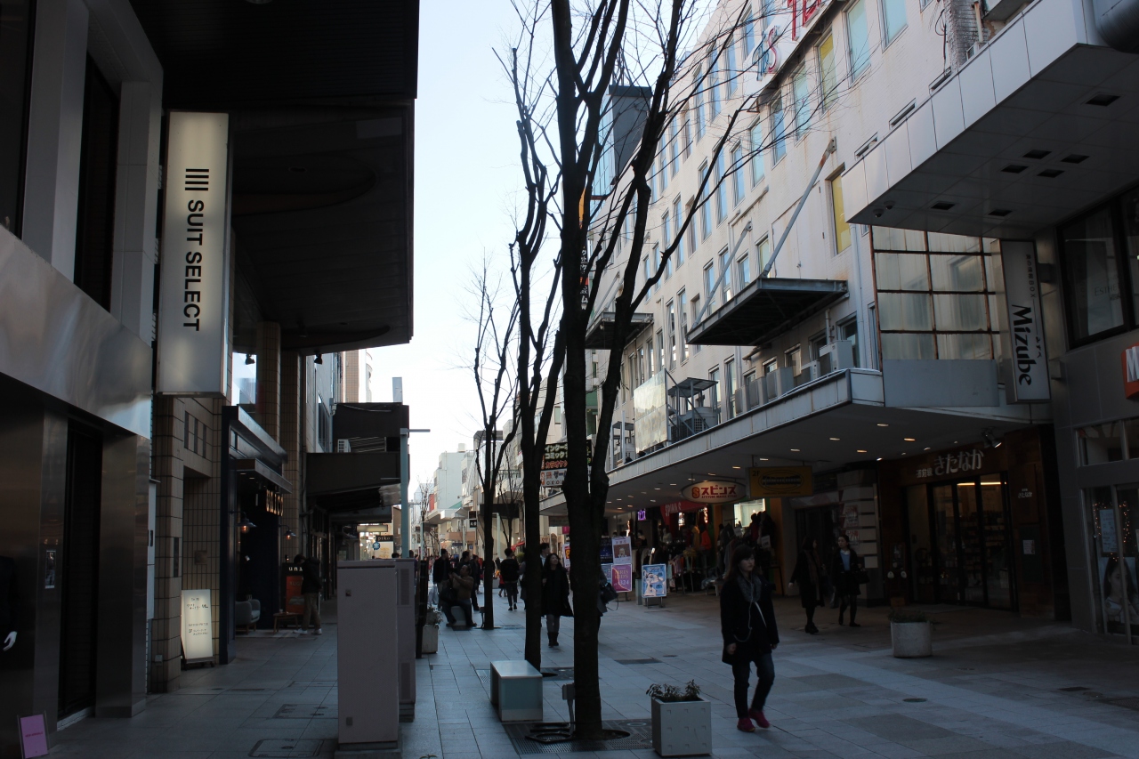 武蔵ケ辻近くの商店街で、以前は大きなアーケードが通りを覆っていました。昔から横安江町と親しまれていましたが、アーケードを撤去して金澤表参道という愛称が付けられました。広々した街並みが感じられます。金沢ふらっとバスがこの商店街を通り抜けます。