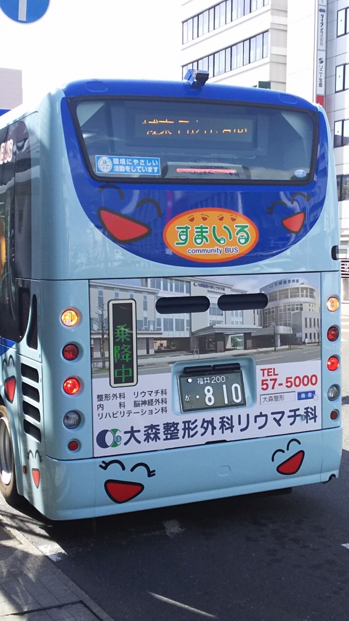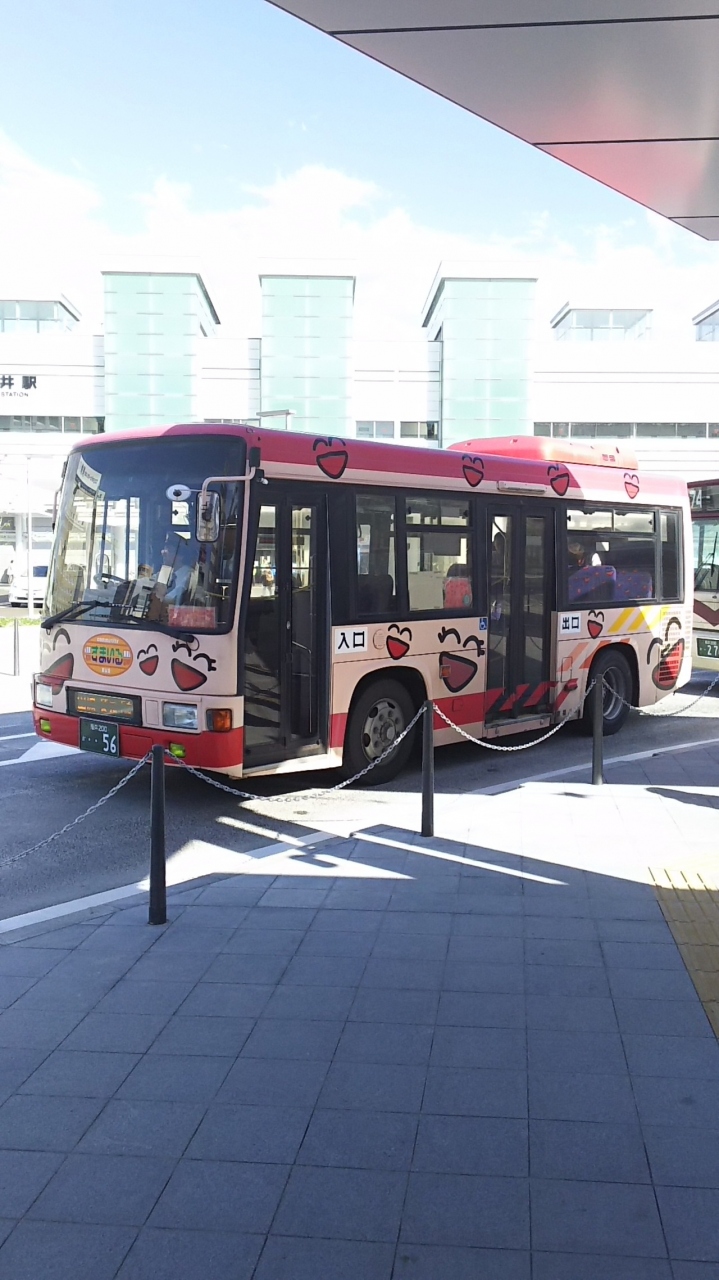 福井駅を起点に福井の市街地を走るコミュニティバスです。車体には笑顔が描かれており、4つのルートがあります。小型のバスで100円、1日乗車券なら300円で乗り放題になります。また、福井では初めてとなるバスのICカードを採用しています(IKOUSAカード、京福バスでは使用不可)。