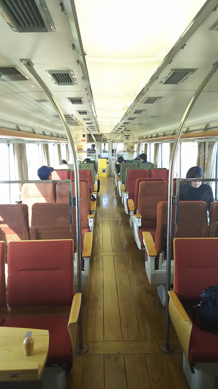 - 新製のディーゼルカーですが、ステップがあるので乗り降りは多少不便。