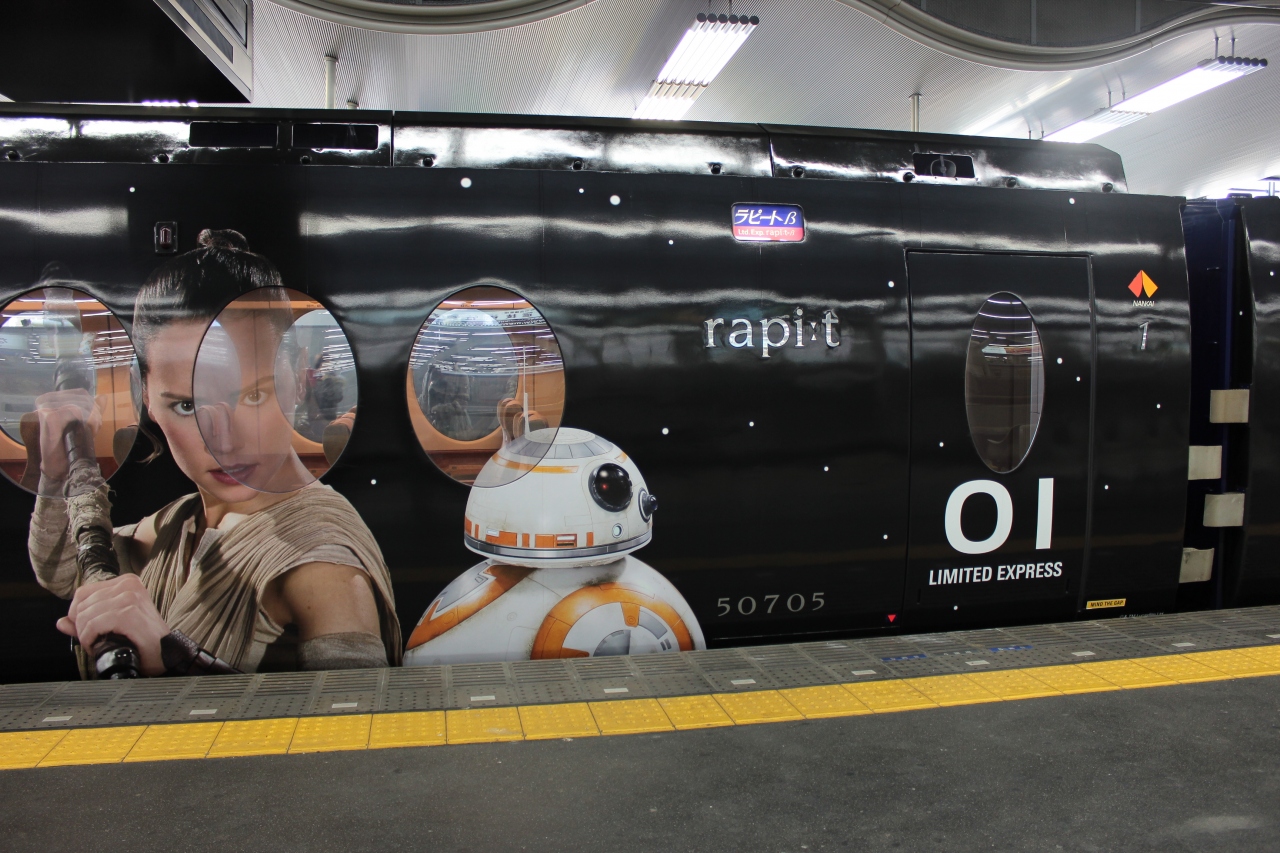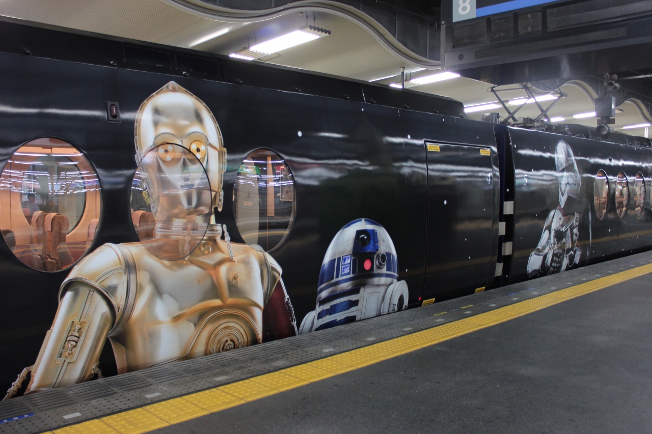 スターウォーズのラッピングを見てきました。黒ずくめの車両がインパクトあってたまりません。