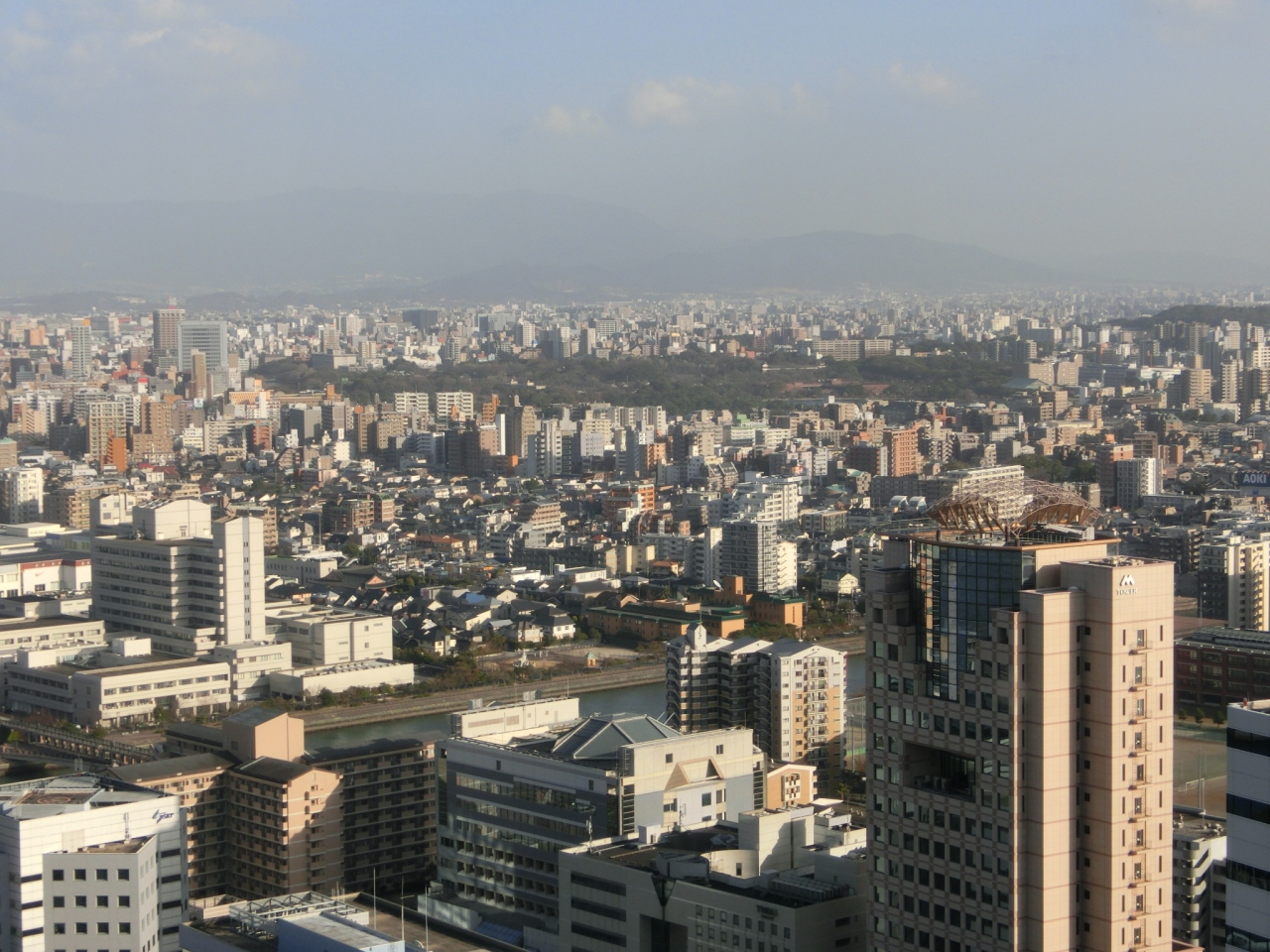 福岡の市街地が見渡せます。運がよければ着陸前の飛行機も見られます。