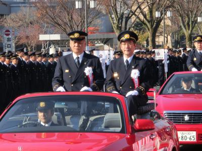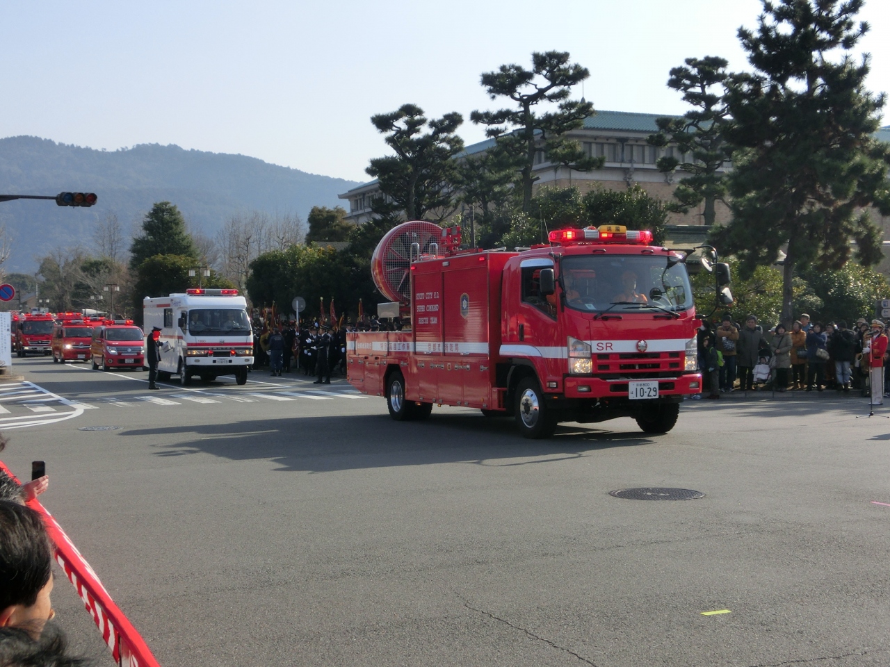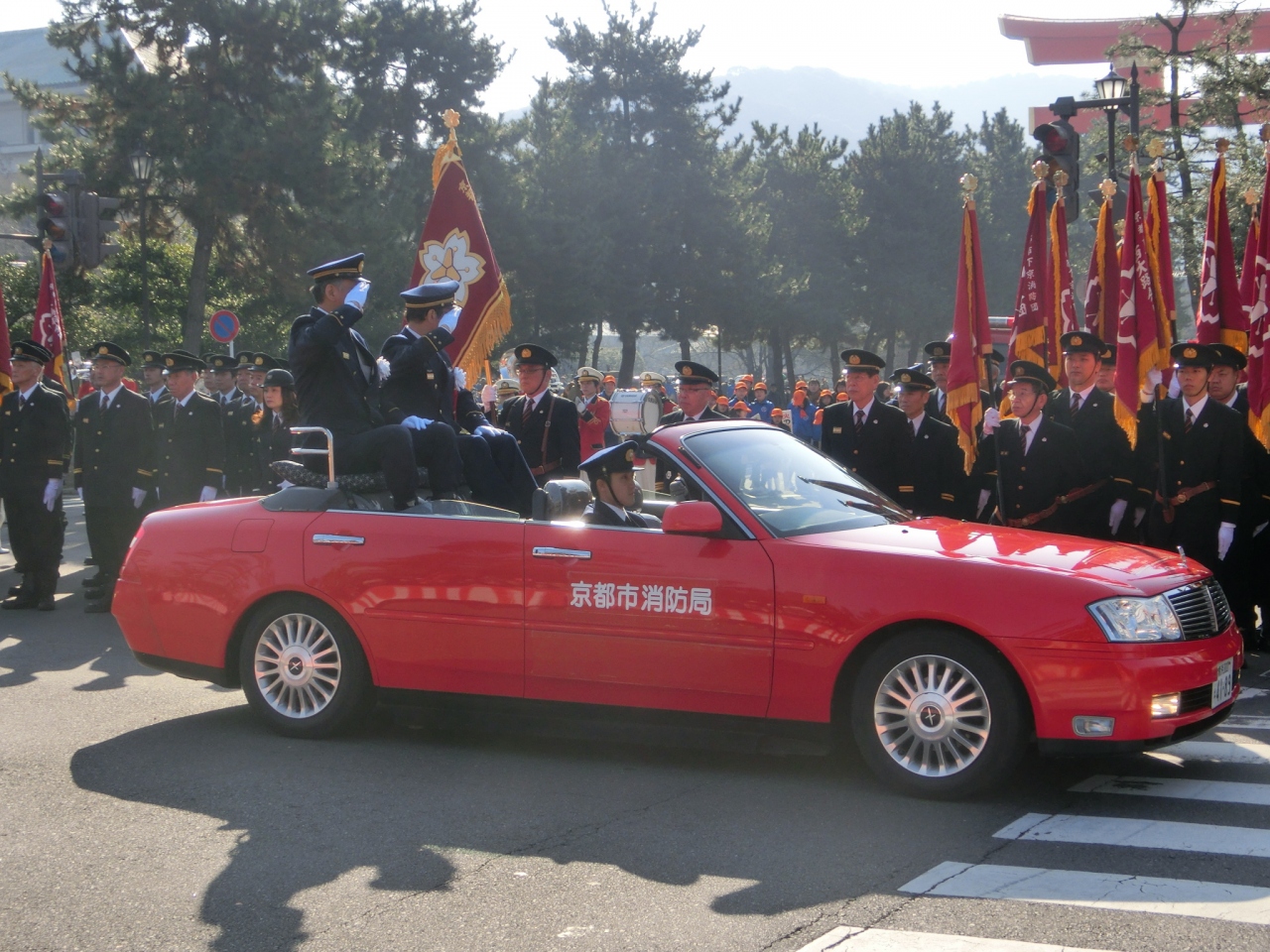 2014年の京都市消防出初式を観覧するために訪れました。毎年1月の第二日曜日に開催され、みやこめっせ前の道路を使いパレードします。岡崎公園や平安神宮からも近く出初式終了後はこれらを訪れるのもありです。地下鉄東山駅が最寄となります。