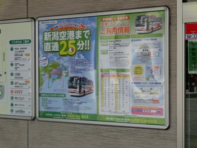 新潟空港へ向かうリムジンバスです。SuicaなどのICカードが使えます。新潟空港に乗り入れている路線を反映してか、車内放送はハングル、中国語、ロシア語、英語の4か国語の案内もあります。ただ、料金は多少高いかなと感じました。