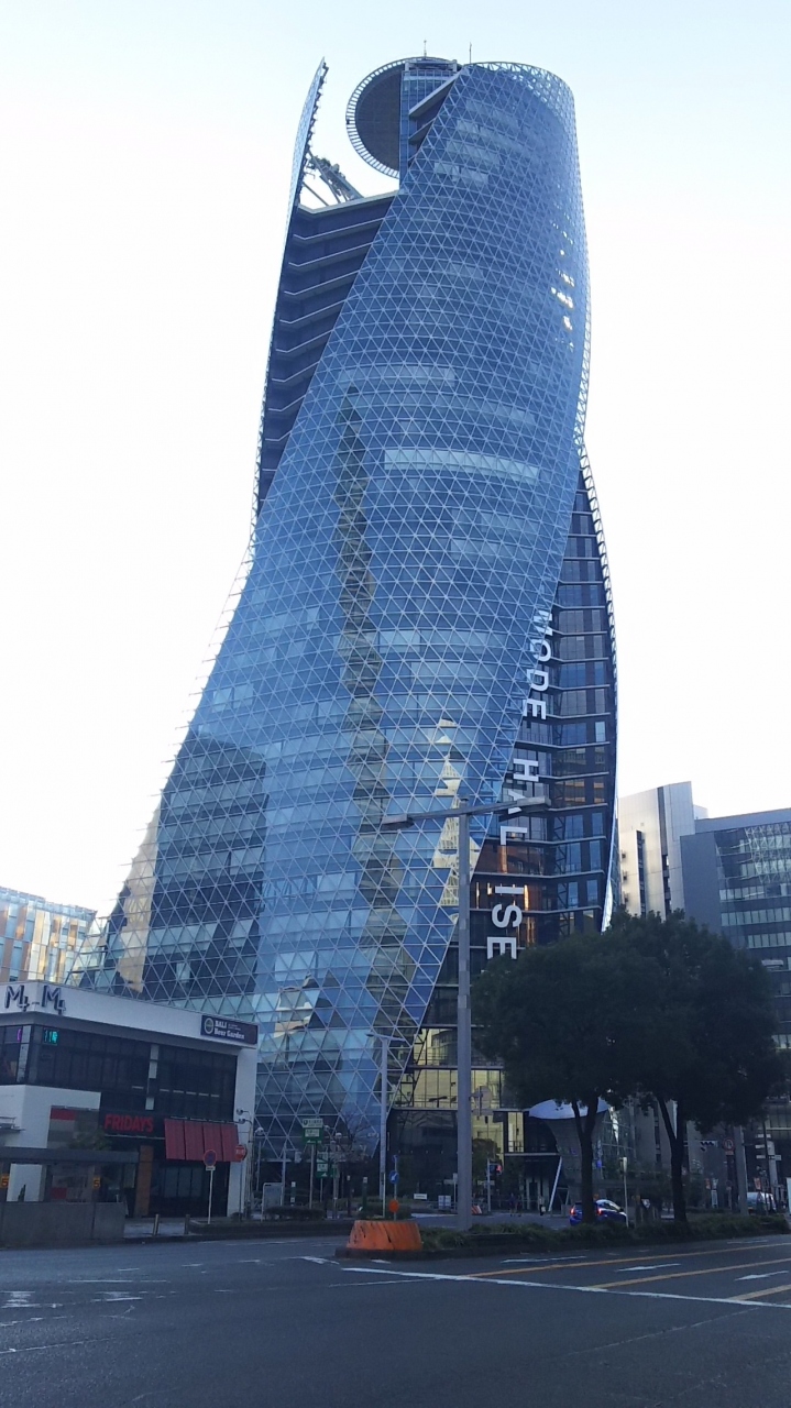 名駅地区には様々な高層ビルがありますが、ここは一番目を引くデザインです。ビル全体がらせん状になっており、インパクトがあります。ここはモード学園の系列3校(名古屋モード学園・HAL名古屋・名古屋医専)の校舎です。夜になるとライトアップも綺麗なビルです。