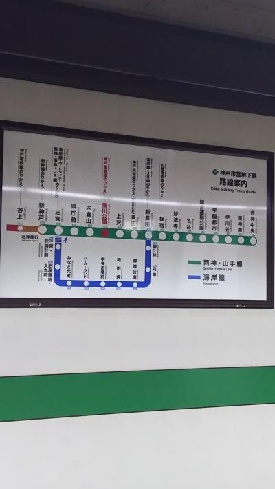 神戸で最初にできた地下鉄です。新神戸駅から西神中央駅までの路線で、路線名は「西神・山手線」となっています。湊川公園から三宮まで乗りました。