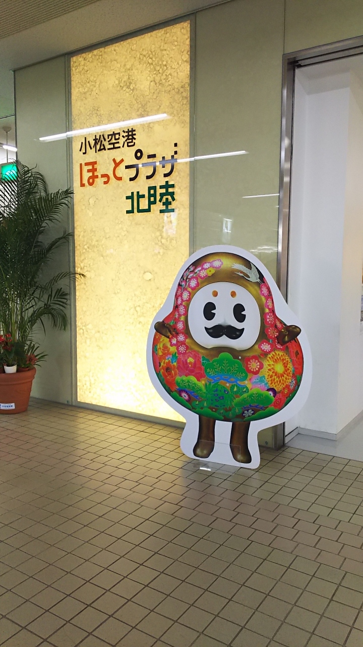 小松空港内にある無料休憩所です。搭乗者出口のそばにありますのですぐわかります。ここにはひゃくまんさん(パネルですが)いたり、恐竜博士がベンチに座っていたりします。中には九谷焼で製作された北陸の風景が壁に展示されています。これだけでも見応えはあるかと思います。