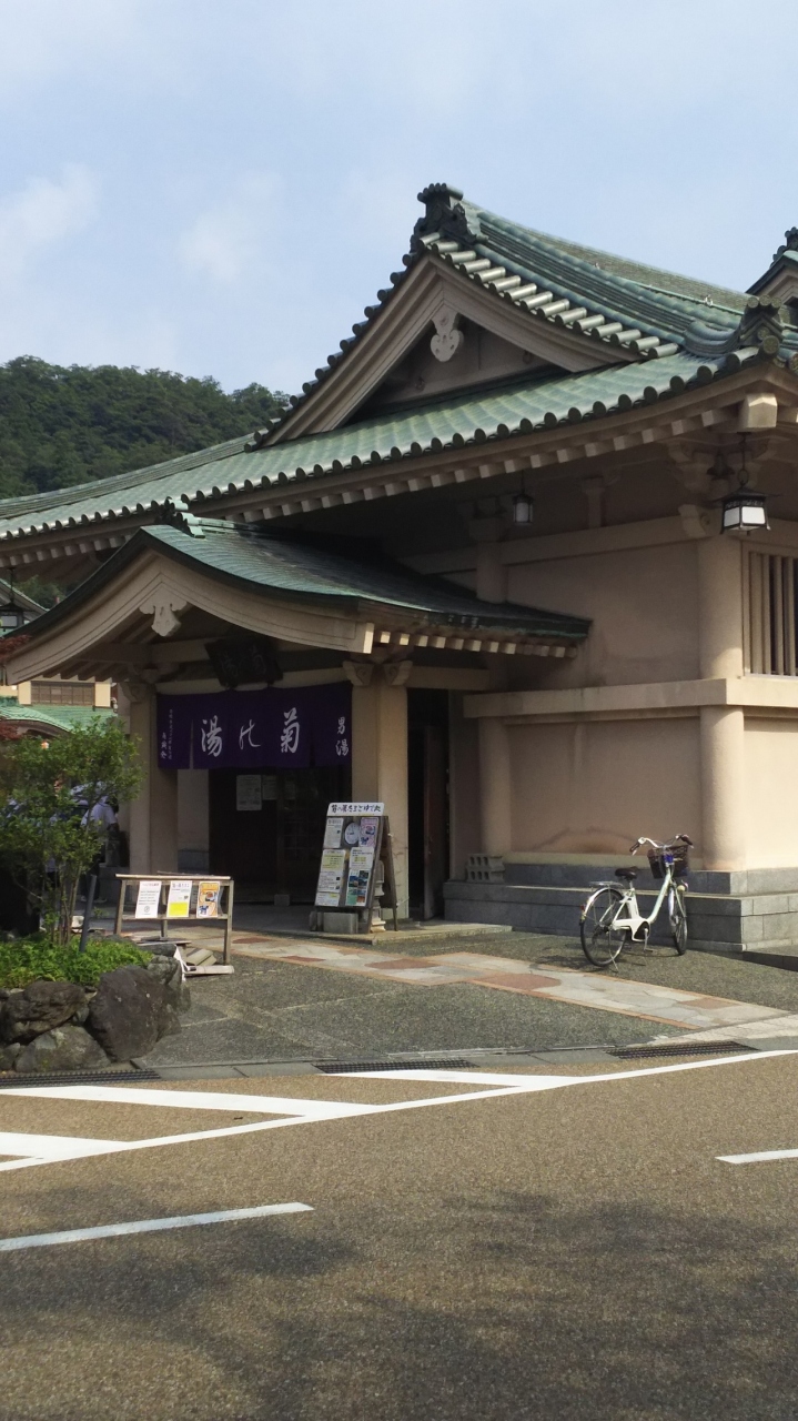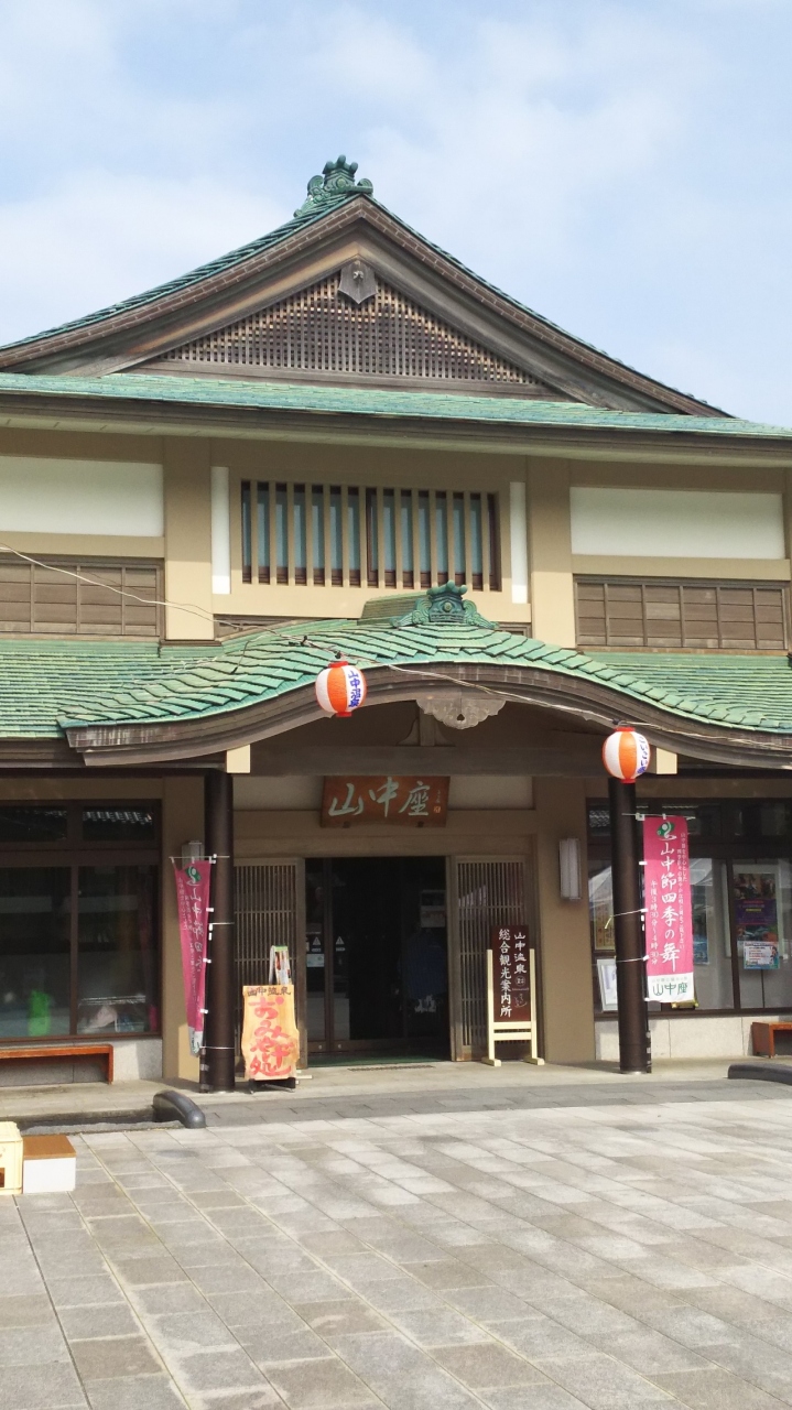 山中温泉の総湯で、男湯と女湯は建物が別々になっています。女湯は山中座の隣、男湯は通りに面しています。