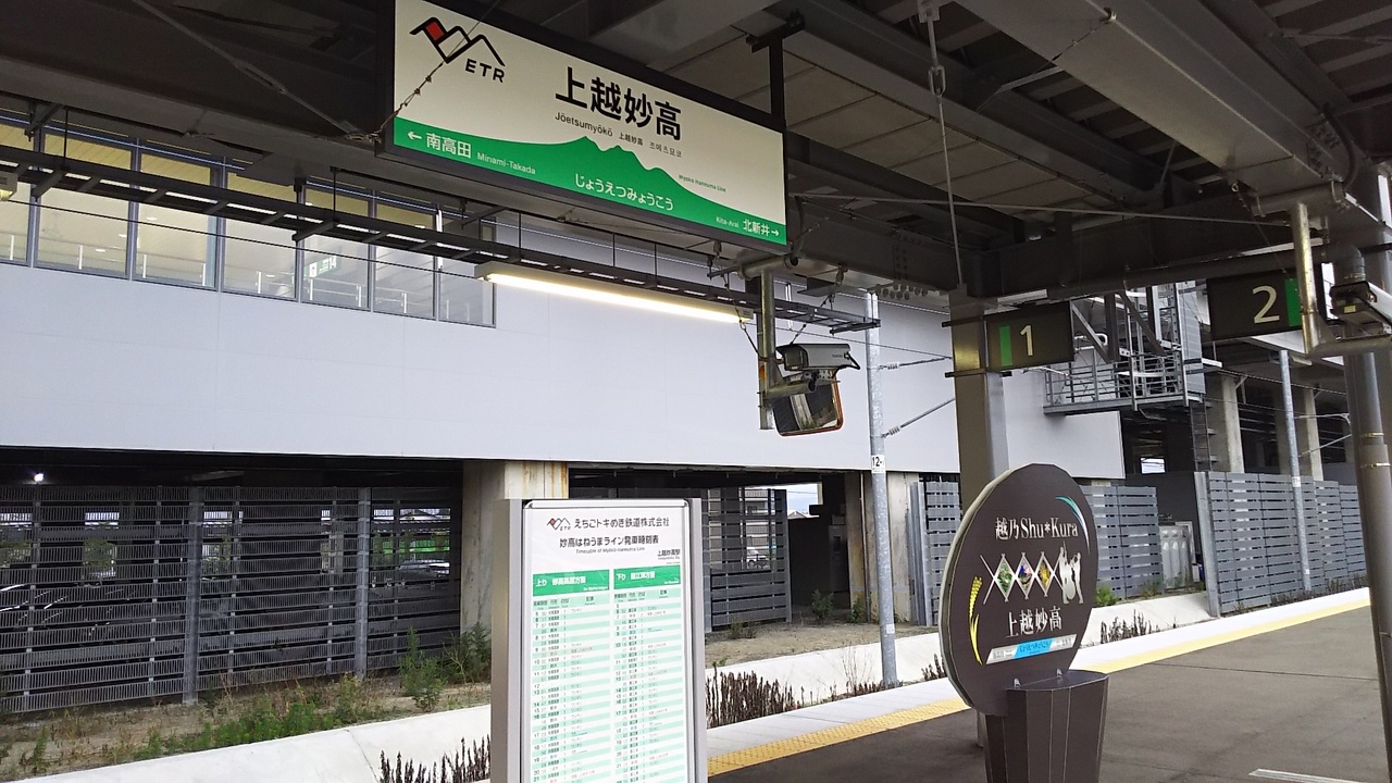 北陸新幹線開業後、信越本線から経営分離した並行在来線の一つです。直江津駅から妙高高原駅までの新潟県側がこの路線となります。全線単線で、上越妙高駅など数か所で列車交換をします。そのため、本数は少なめです。