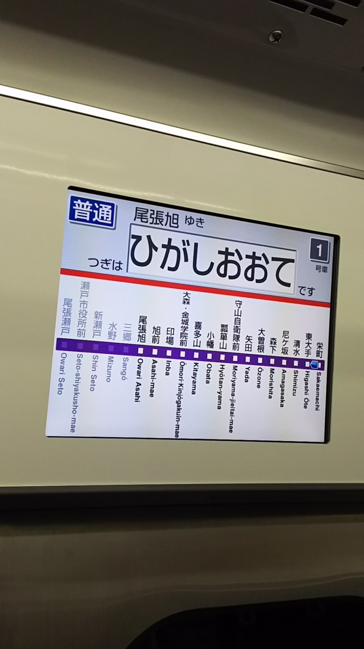 栄町駅から尾張瀬戸駅までの路線です。他の名鉄の路線とは接続していません。今回は栄町駅から大曽根駅にかけて乗りましたが、すべて新型のステンレス車に変わっています。