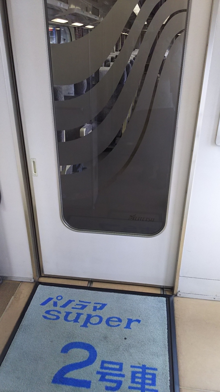 先頭車両がパノラマ型の名鉄の特急です。基本的に6両編成の特急で使われることが多いようです。1号車と2号車の特別車両に乗るには、「ミューチケット」が必要です。