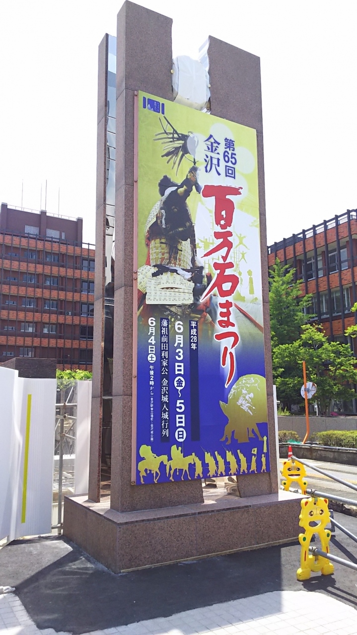 毎年6月の第1土曜日に百万石まつりのハイライトである、「百万石行列」が開催されます。金沢駅前をスタートとし、金沢城公園までの金沢城入城を再現しています。この行列では地元の民放2局がテレビ中継をします(ただし、金沢城入城までは時間の都合上放送しません)。