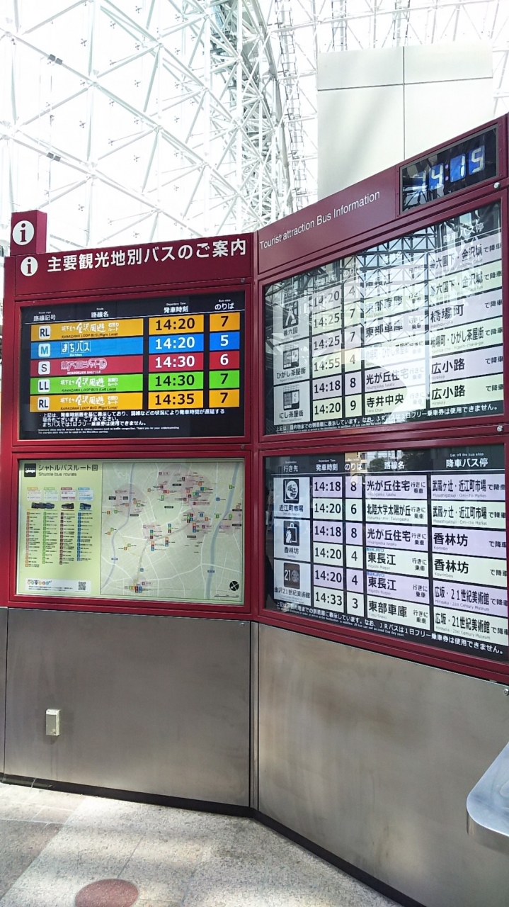 金沢に来たら、まずここから市内各地へ向かうことになります。乗り場の数に路線数は北陸で最大です。