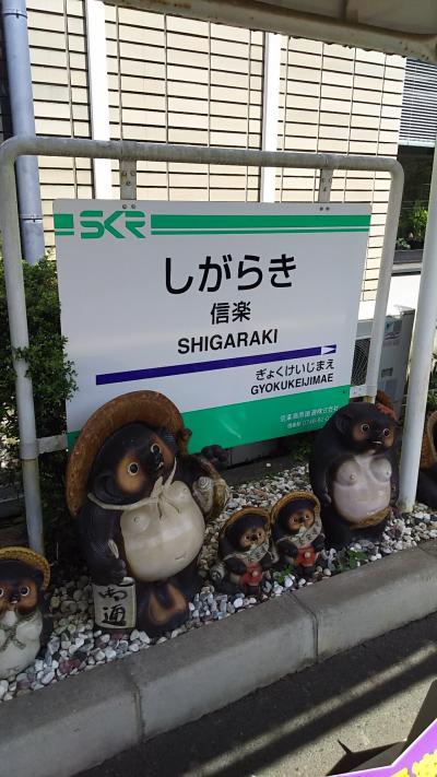 貴生川駅と信楽駅を結ぶ第3セクターの路線です。6駅しかない短い路線ですが、正面衝突事故と台風被害による運休の二度の危機を乗り越えて現在に至っています。沿線の各駅には、信楽焼のたぬきが至るところに見られます。特に信楽駅はホームや駅前までたぬきづくし。これも見ものですね。