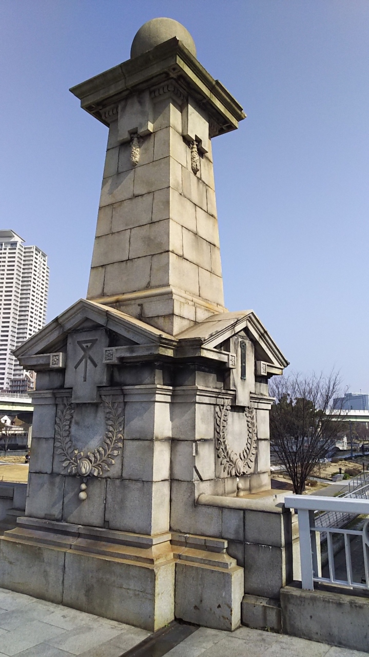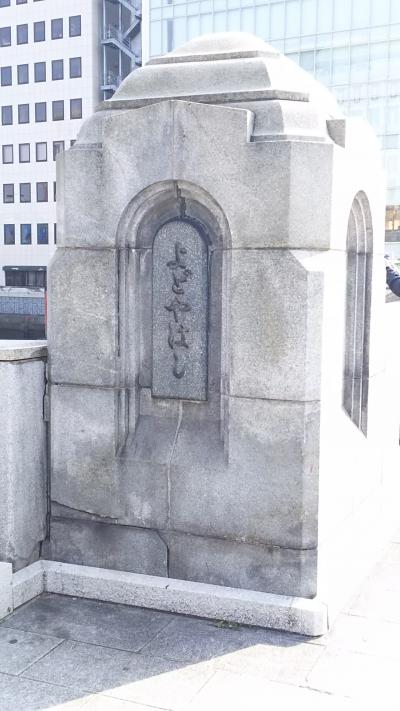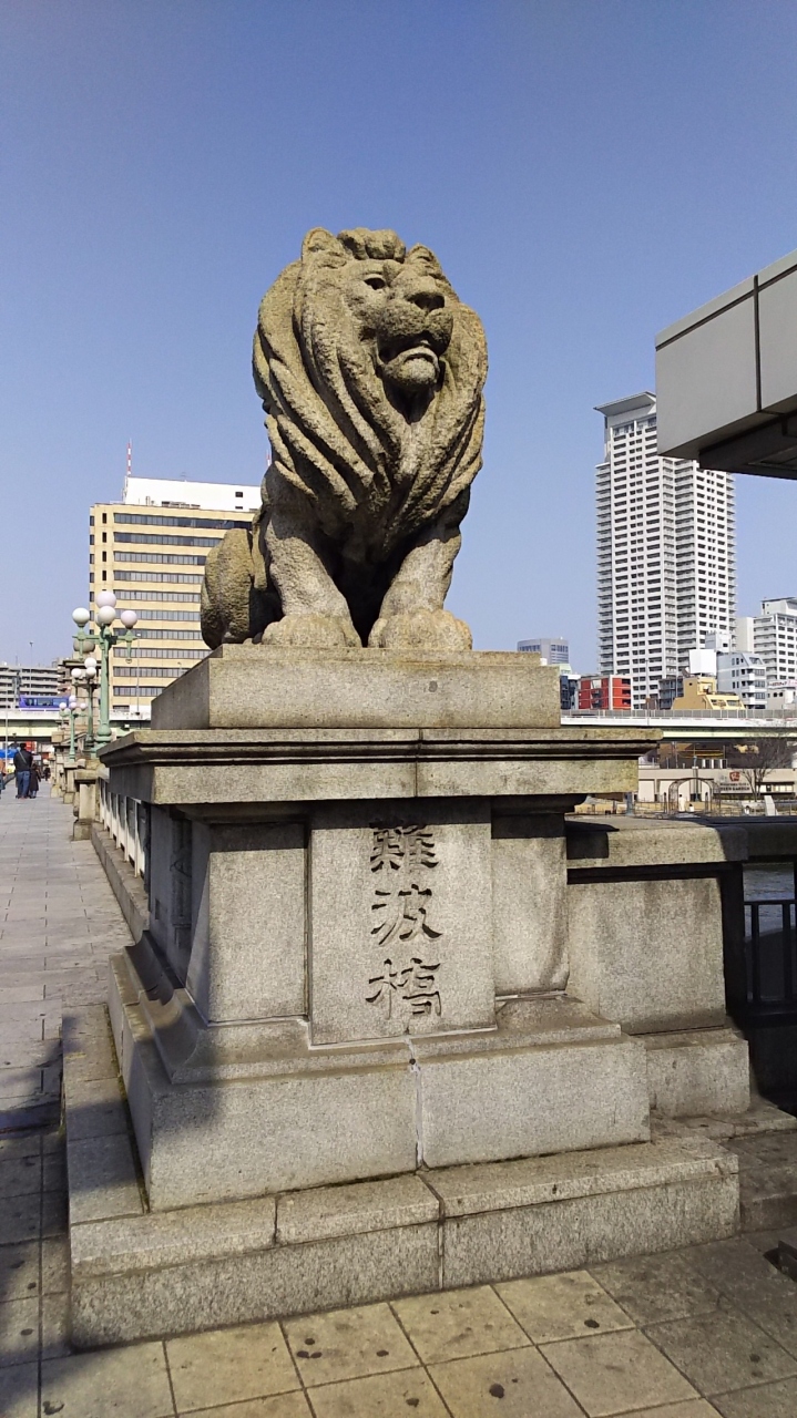 北浜駅降りてすぐにある大阪を代表する橋のひとつです。ライオンが橋に鎮座しています。三越のライオンとはちょっと違うけど…インパクトあります。ここから見る土佐堀川の風景はいいですねぇ。橋の中程には、大阪市の市章である「みおつくし」が刻まれている標もあります。