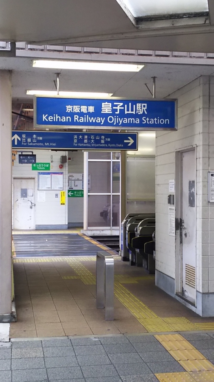 京阪石山坂本線の駅で、読みは「おうじやま」です。この皇子山駅は、JR湖西線(大津京駅、ここから徒歩3分)との乗り換えができますが、湖西線では山科駅と近江塩津駅を除くとほかの鉄道と乗り換えができる唯一の駅です。ホームごとに改札機があります。なお、2018年3月に駅名が「京阪大津京駅」に変わります。