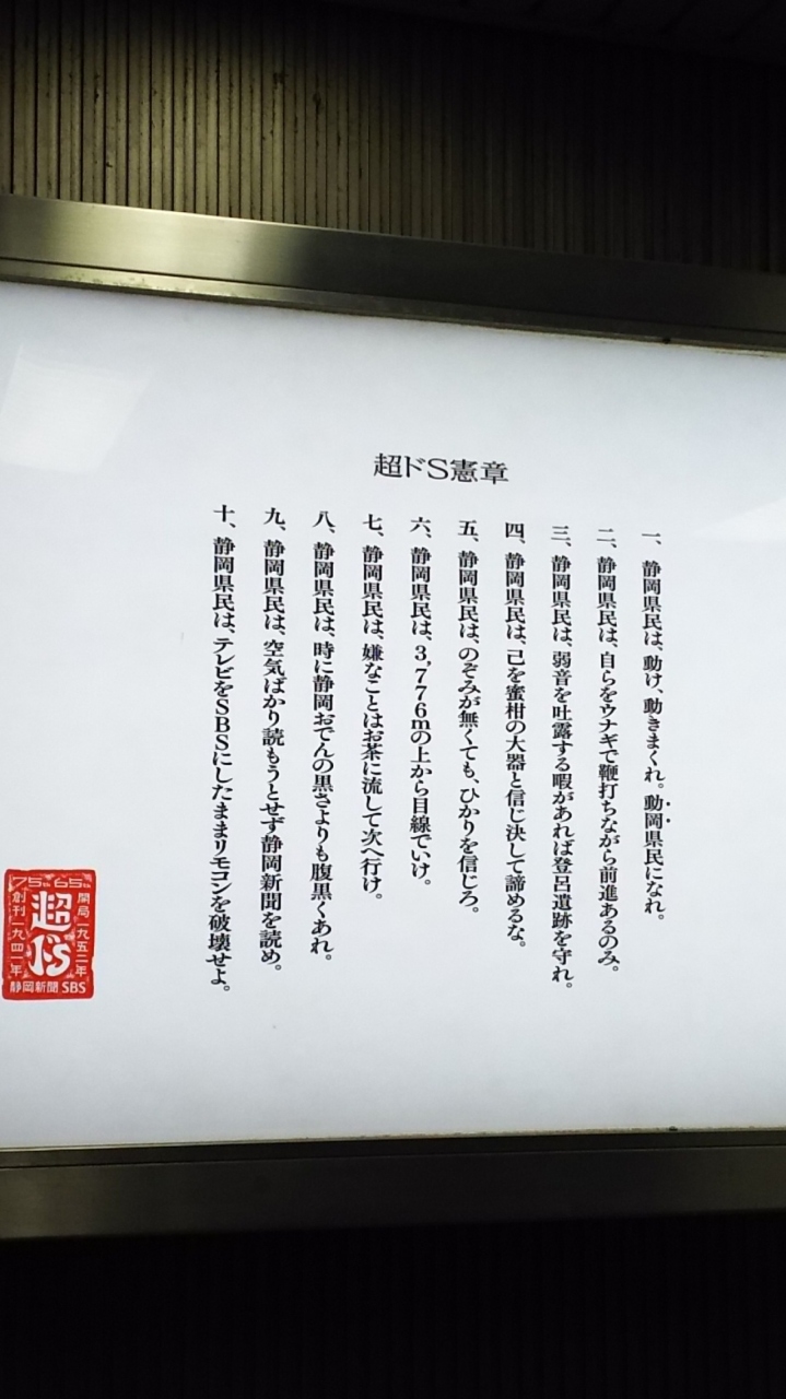 一際目立ったのが「超ドS」なる広告。何の意味やらと思いましたが、静岡新聞と静岡放送による広告。つまり、静岡人は静岡らしさを追求せよという意味合いだそうです。インパクトあり過ぎる。