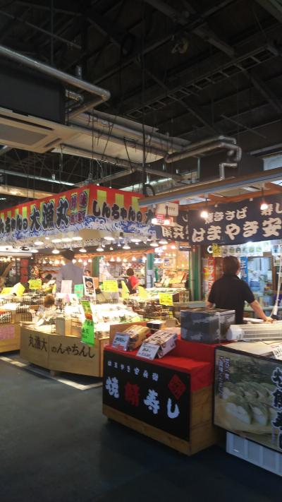 福井で魚を買うなら、ここ日本海さかな街です。国道27号線に面しているので入りやすいです。人気のあるショッピングスポットということもあり混んでいました。観光バスが店側に駐車できるのが嬉しい配慮です。ところ狭しと海産物が並びますが、とにかく呼び込みがすごいです。慣れない方は戸惑うことでしょう。試食もどうぞと言われたらなかなか断れませんね。
