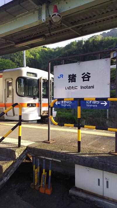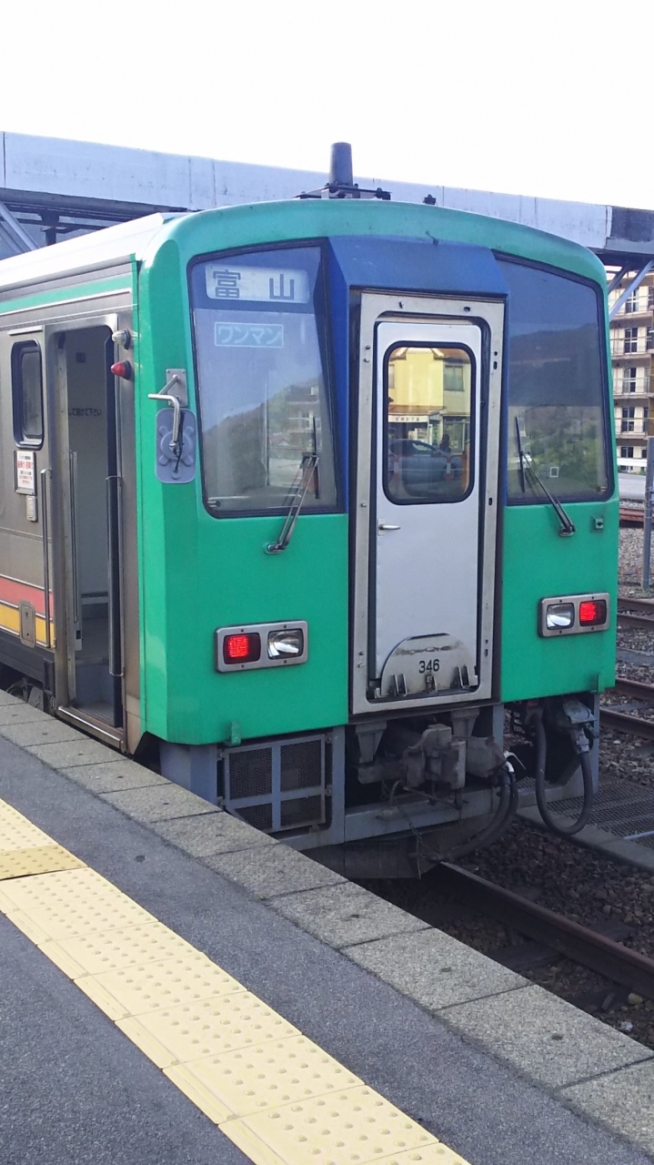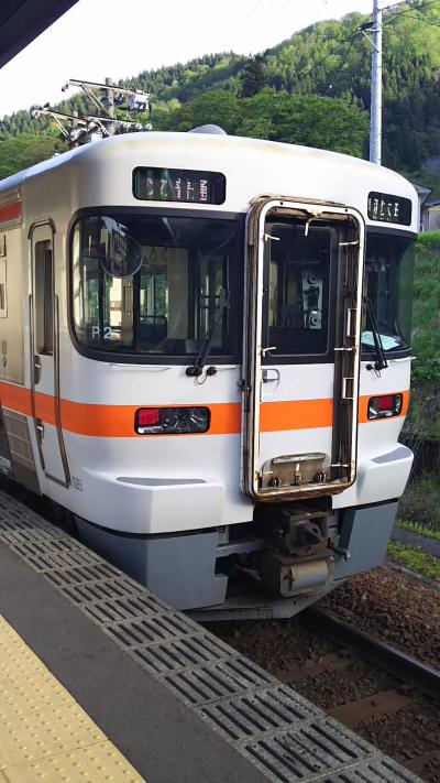 猪谷駅はJRの境界駅ということもあり、車両の違いも比べられます。西日本はキハ120形。ステップありでドアは手で開けなければなりません。これに対し、東海はキハ25形。ドアはボタンで開け閉めができ広いです。ローカル線はこういうところにも差が出るんですよね。