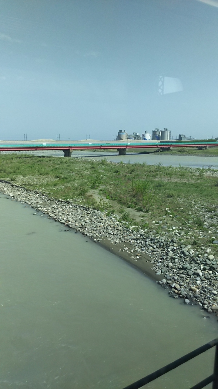 かつては北陸本線で、今はえちごトキめき鉄道の日本海ひすいライン。泊方面から行くと糸魚川駅の手前で姫川を渡ります。北陸新幹線だとあっという間に過ぎますが、日本海ひすいラインなら姫川の河口の景色がゆっくり楽しめます。前日が雨だったため濁り気味でしたが、普段は清らかな景色です。