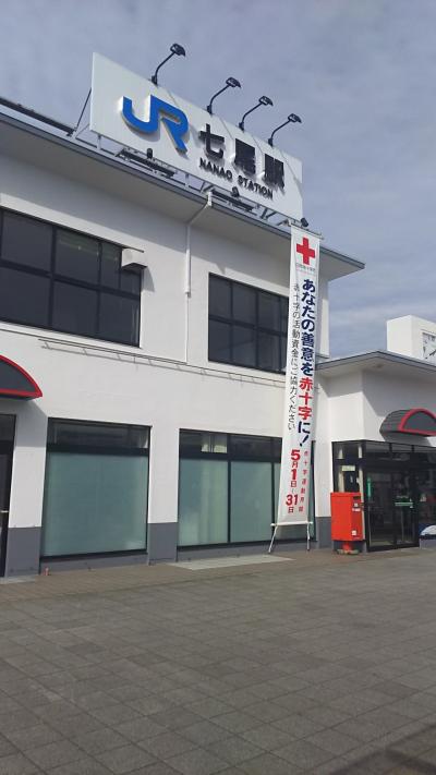 青柏祭を見に行くため七尾線に乗り七尾駅まで来ました。金沢駅から普通列車で1時間半、本当に遠い。ホームには花嫁のれんと青柏祭のでか山(ミニチュアです)が展示されています。コンパクトですが、待合室にはセブンイレブンもあります。なお、改札はJR用とのと鉄道用の二つがあります。