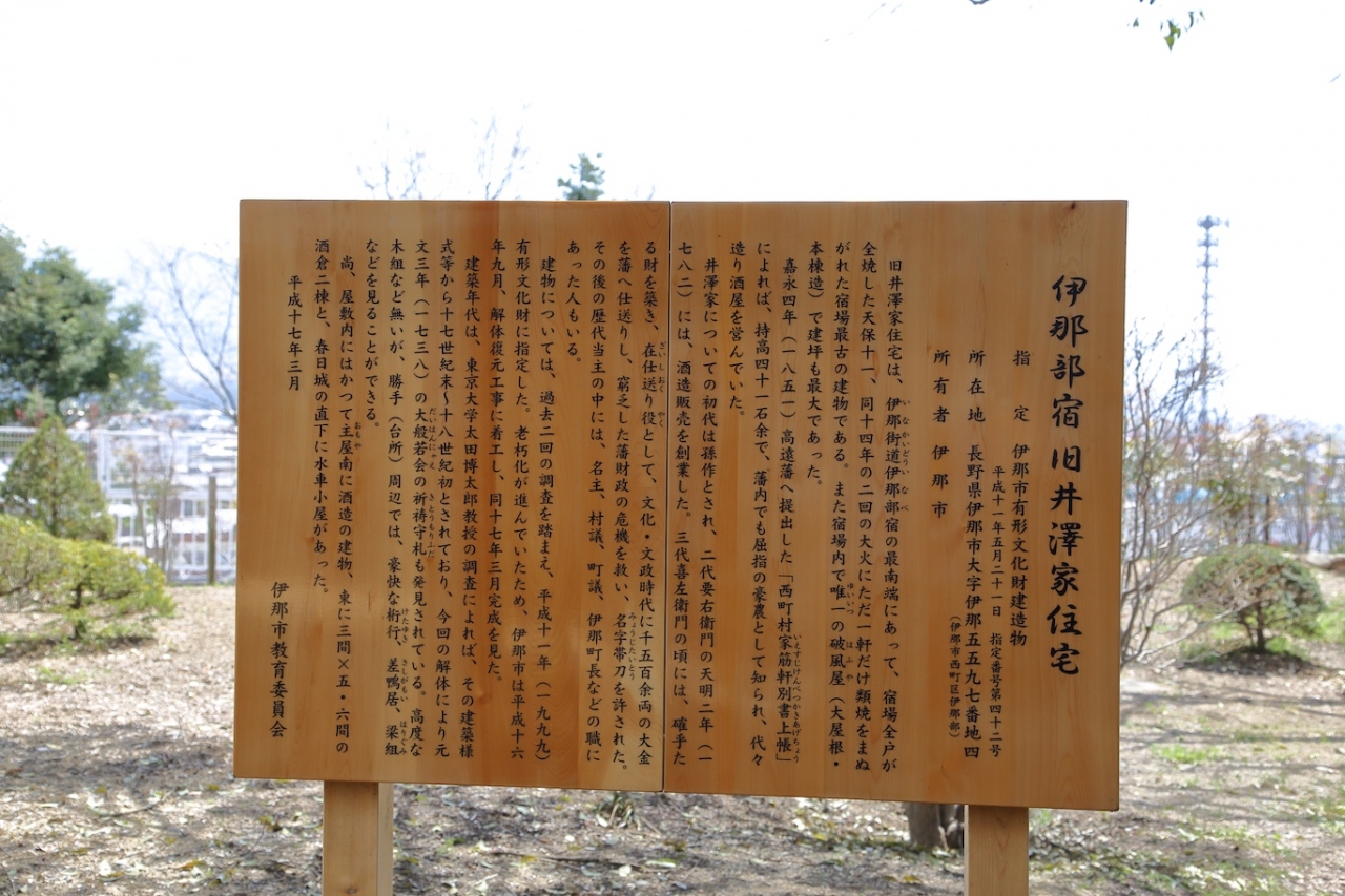 伊那部宿に残る江戸時代の豪農のお屋敷です。春日公園の南東、伊那部宿の南端に位置しています。写真撮影は自由で座敷に上がることも出来ます。