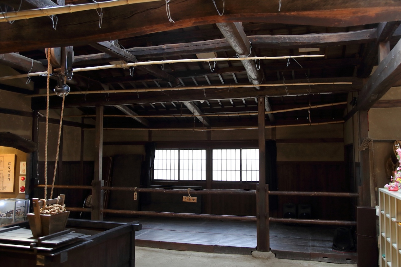 江戸時代の豪農の屋敷に相応しく、梁などはものすごく立派なものを使っています。造り酒屋も営んでいたようで、屋内には住居の他に店舗に当るスペースも残っています。屋内に馬屋や井戸もあり、珍しいと思います。酒造りの道具や手形なども残っており、興味深いです。