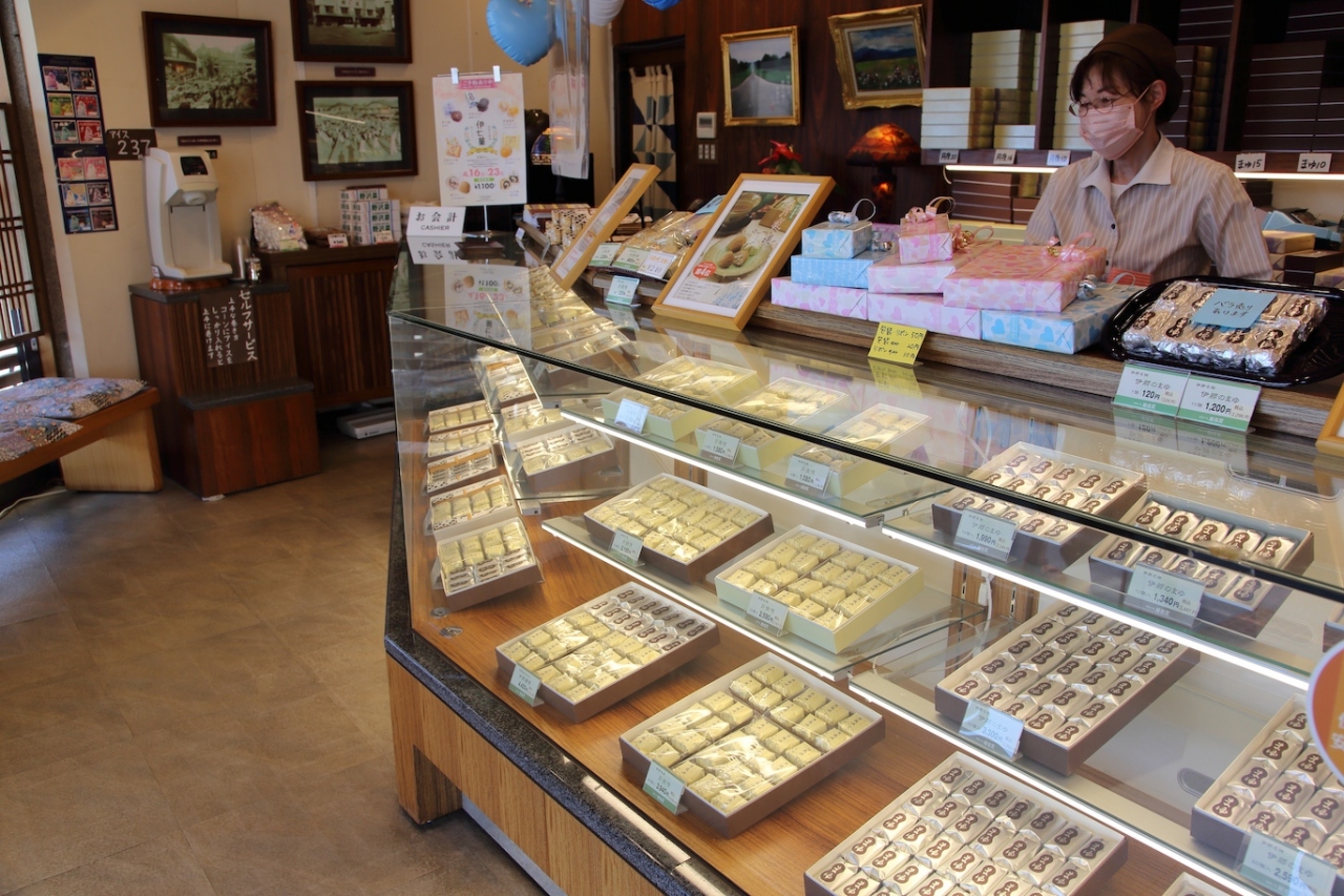 こちらのおすすめは「伊那のまゆ」というお菓子です。最中に生クリームを入れ、全体をチョコレートでコーティングしたお菓子で、言ってみれば和風のエクレアのようなお菓子です。一般的なケーキのフレッシュクリームを想像すると若干違いますが、チョコレートと生クリームと最中の組み合わせで不味い訳がなく、非常に美味しかったです。残念な点があるとすれば、暑いと溶けてしまうことですね。店員さんに確認しましたが、気温28度以上になると溶けてしまうそうです。ネットでも販売されているので、暑い時期に訪問される場合はネットで取り寄せると良いでしょう。