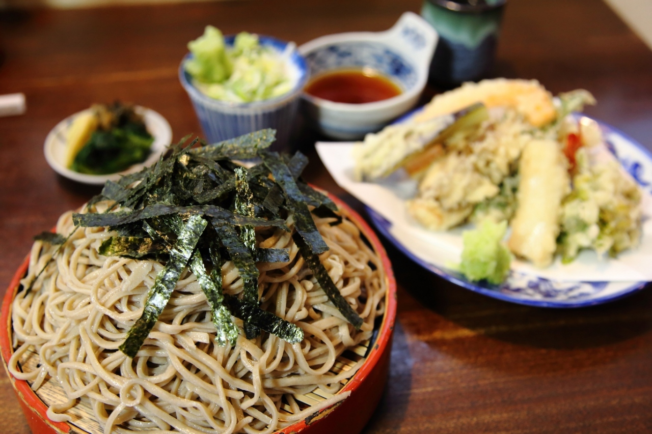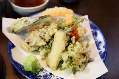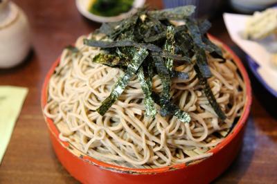 こちらでは天ざるそばをお願いしました。大盛りは凄い量だと聞いていたので普通盛りをお願いしましたが、それでも凄い量でした。天ぷらも野菜と山菜をメインに海老が加わって盛りだくさんで、お腹一杯になりました。そばは風味が立ってコシがあり、天ぷらもカリッと揚がっていて、味も良かったです。大盛りは食べきったことが無いと注文できないようで、どうしても大盛りが食べたい場合は普通盛りを食べきった後、お願いすれば大盛り分を追加してくれるようです。実際、店員さんがそのように案内していました。
