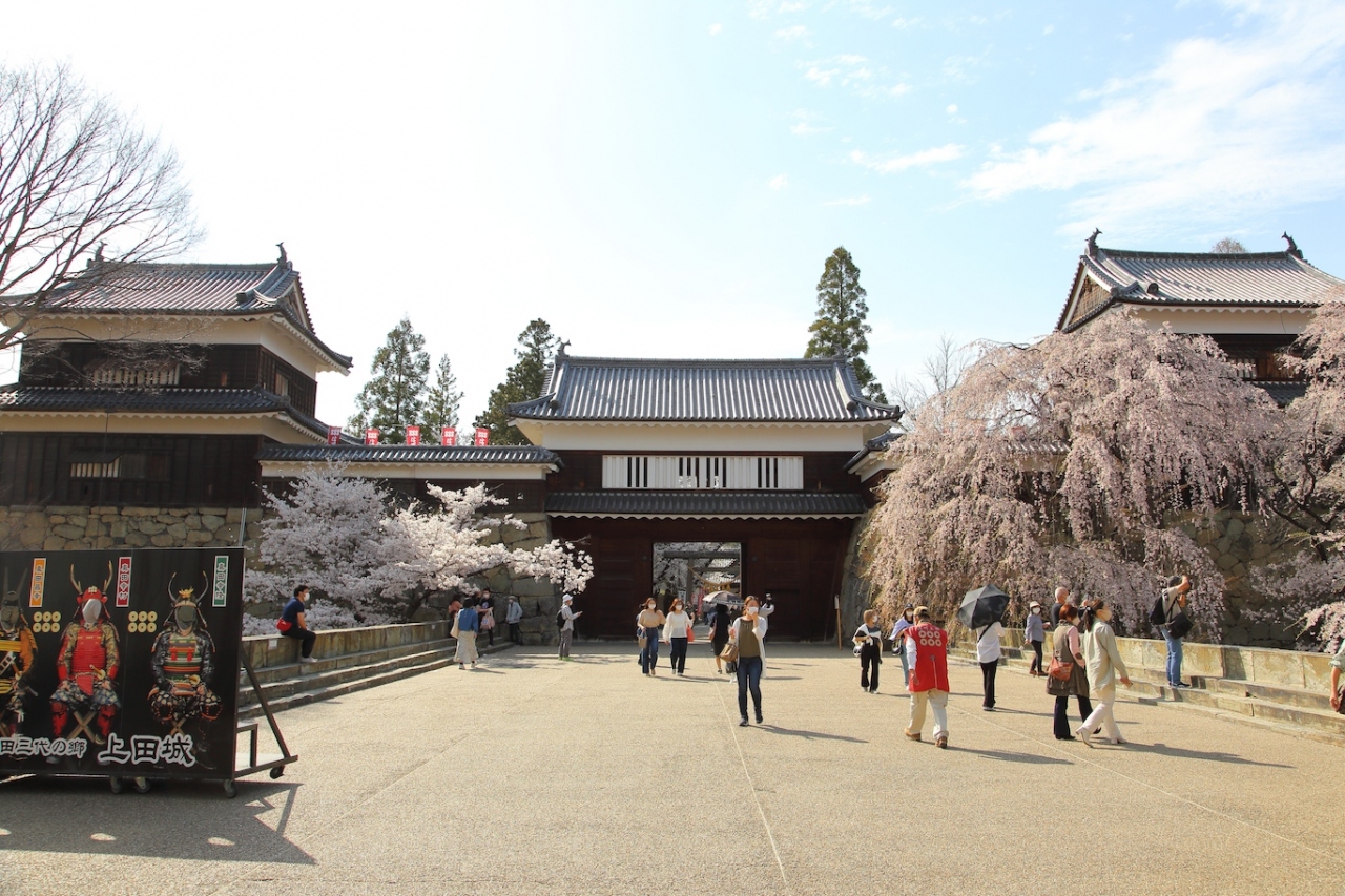 上田市の中心部にある真田氏の居城跡です。実際には真田氏の他、仙石氏や松平氏も居城として使っており、真田氏が使っていた期間が一番短いのですが、知名度からしても真田氏の居城跡という説明が一番しっくりくると思います。残っているのは本丸とそれを囲う堀、3基の櫓と櫓門になります。ただ、櫓門は再建されたものです。公園として開放されていて、櫓に上らなければ無料で見学できます。櫓ではいくつかの資料が展示されています。