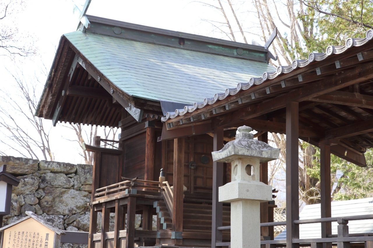 神社としては普通で、鳥居と拝殿と本殿が並んでいます。変わったところと言えば幸村公の銅像と鹿角の大兜が置かれている点でしょうか。上田城を訪れたらセットで参拝するのが良いと思います。- 旅行時期