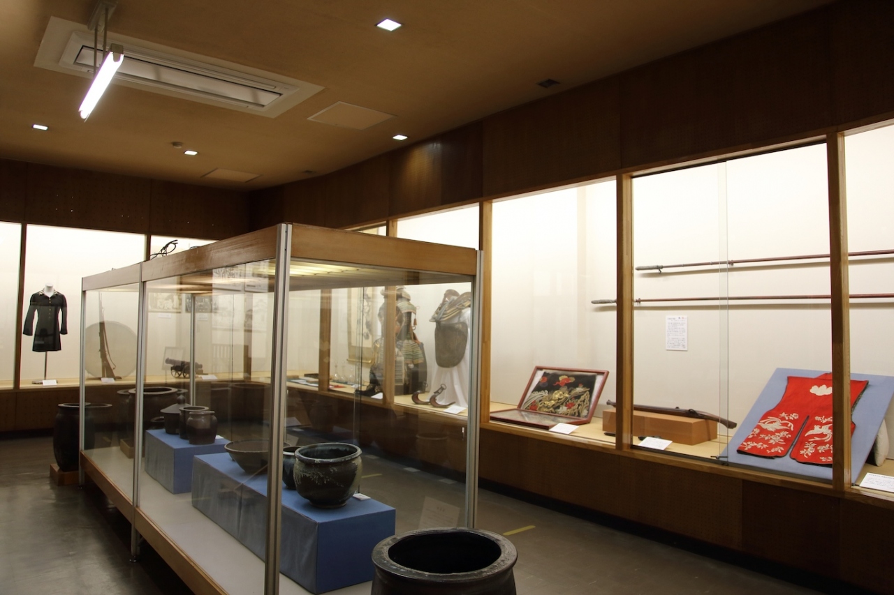 上田城二の丸にある博物館です。本館と別館に分かれており、それほど展示品は多くありませんが上田城の歴史や上田を統治した大名家の文物が展示されています。本館は仙石氏と松平氏関連、別館は真田氏関連と分けて展示されていました。写真撮影は明確に禁止と書かれているブース以外はOKです。チケットは櫓との共通券があるので、両方見学する場合は共通券を買うとお得です。