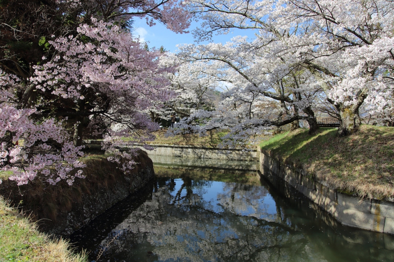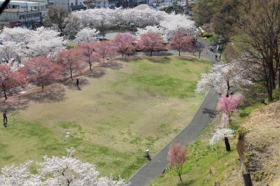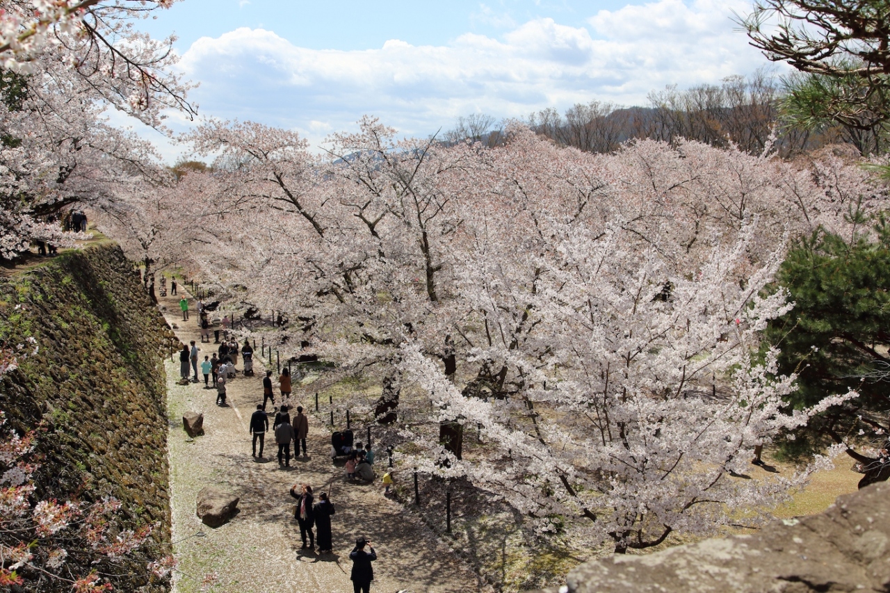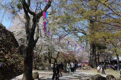 桜100選はだてではなく、私が訪問した際は大分散ってしまっていましたが、それでも十分に楽しめました。二の丸跡や南丸跡の桜も綺麗でしたが、やはり馬場の桜は圧巻でした。小諸八重紅枝垂を中心に桜が植えられ、淡いピンクと濃いピンクと石垣のコントラストが素晴らしかったです。ただ、石垣や天守台の上から見ると散ってしまったところが目につき、少し残念でしたが。やはり満開の時期にもう1度見てみたいですね。