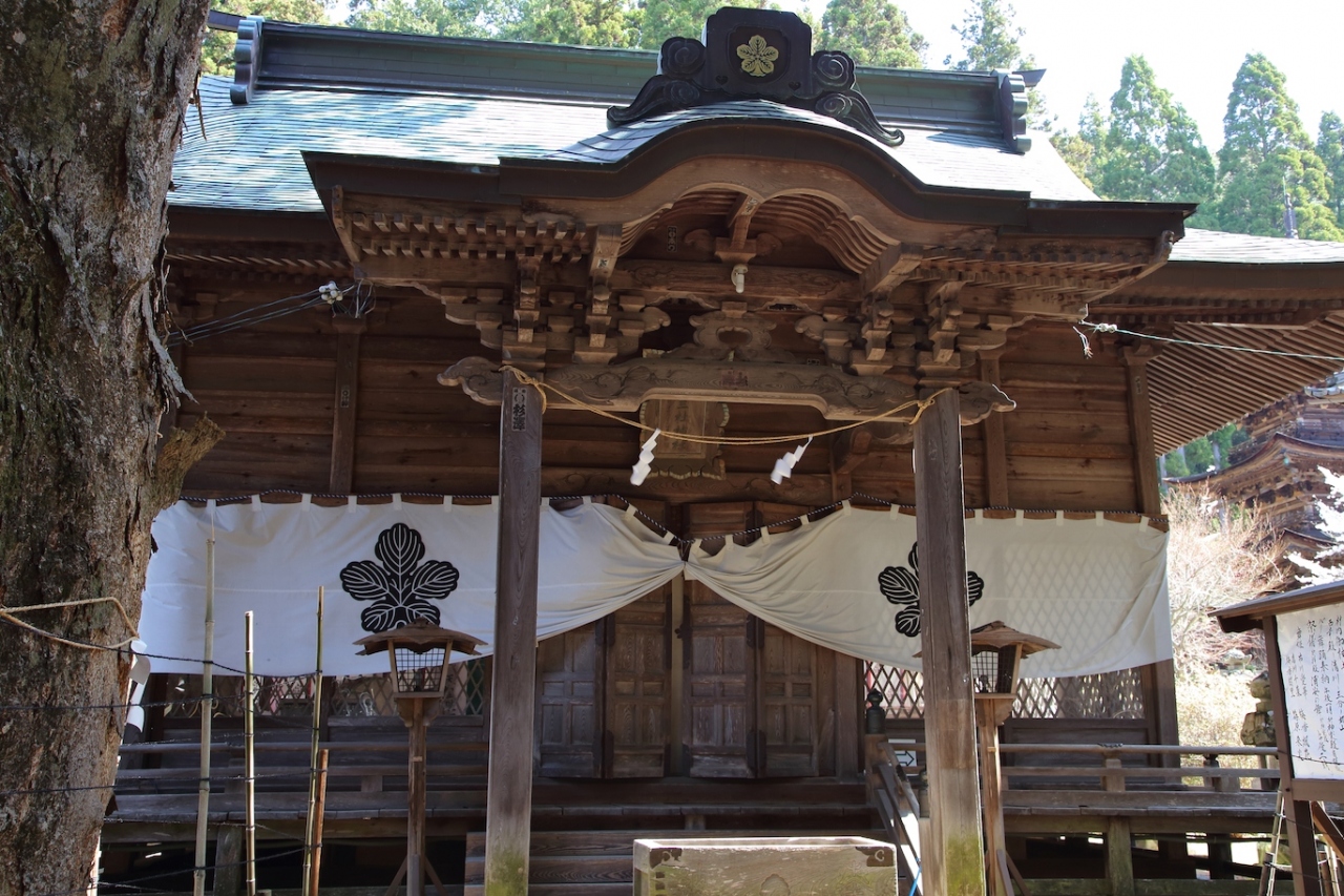 境内には拝殿の他に神楽殿や西本社、中本社、東本社、三重塔が配置されています。建物も古く、かなりの格式があることが判ります。特に東本社と三重塔は重要文化財に指定されています。
