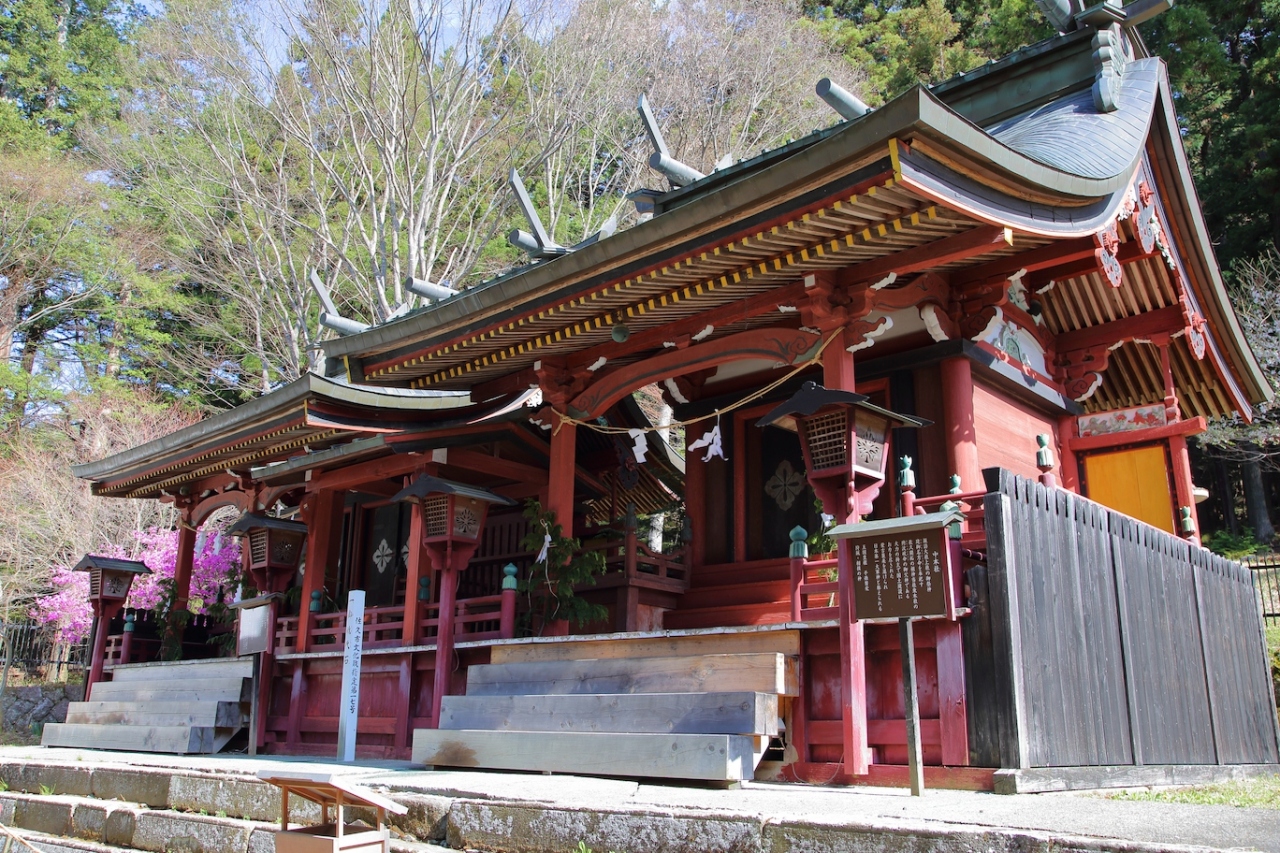 平安時代にはすでに建立されていたようですが、古墳時代から信仰されていたとされ、痕跡も残っているようです。戦国時代にも崇敬を受けていたようで、武田信玄が戦勝を祈願して太刀を奉納したという記録も残っています。