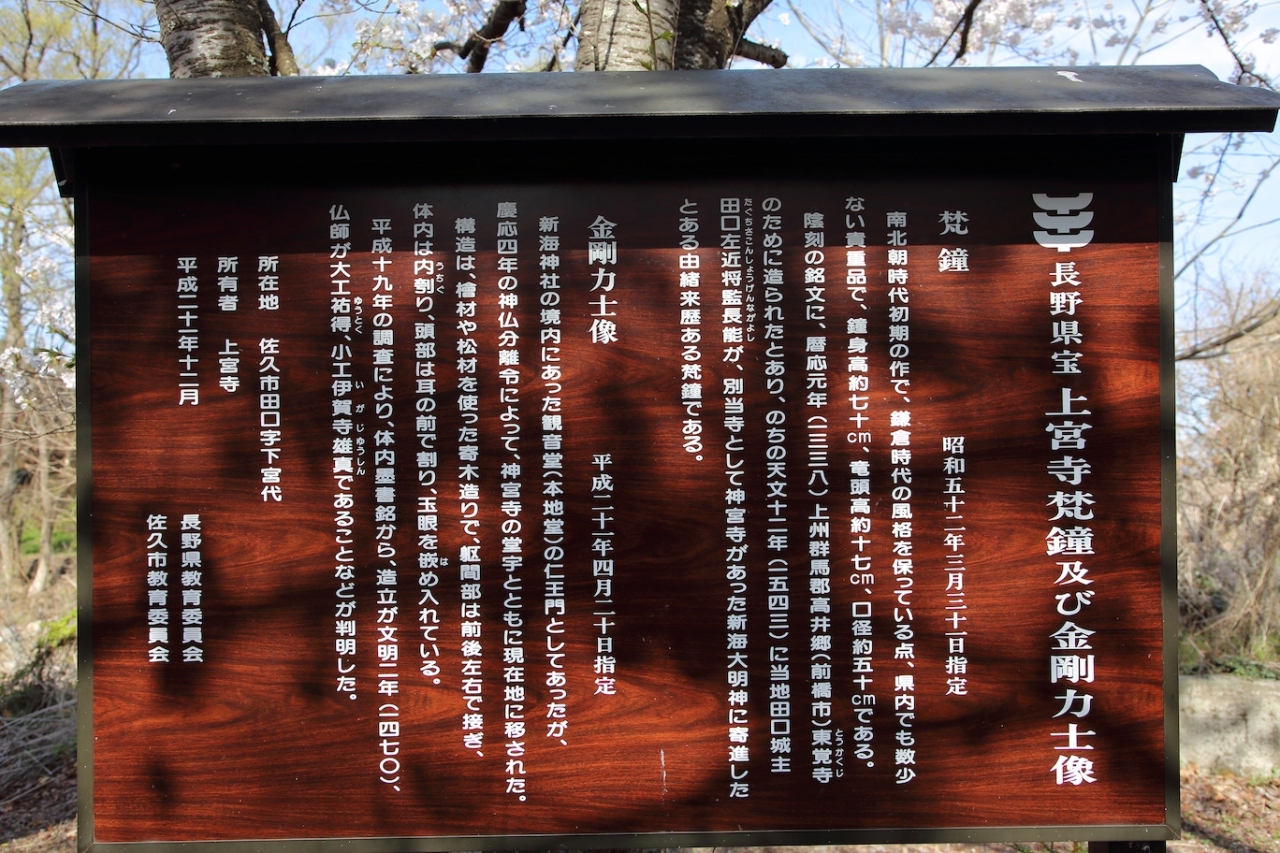 こちらの目玉は梵鐘と仁王像です。新海三社神社に奉納されていたもので、双方とも室町時代の作です。梵鐘は間近で見ることはできませんが、仁王像は間近で見ることができます。力強い造形で、表面の朱が剥げている点に歴史が感じられます。一度見ておいて損は無いと思います。- 旅行時期