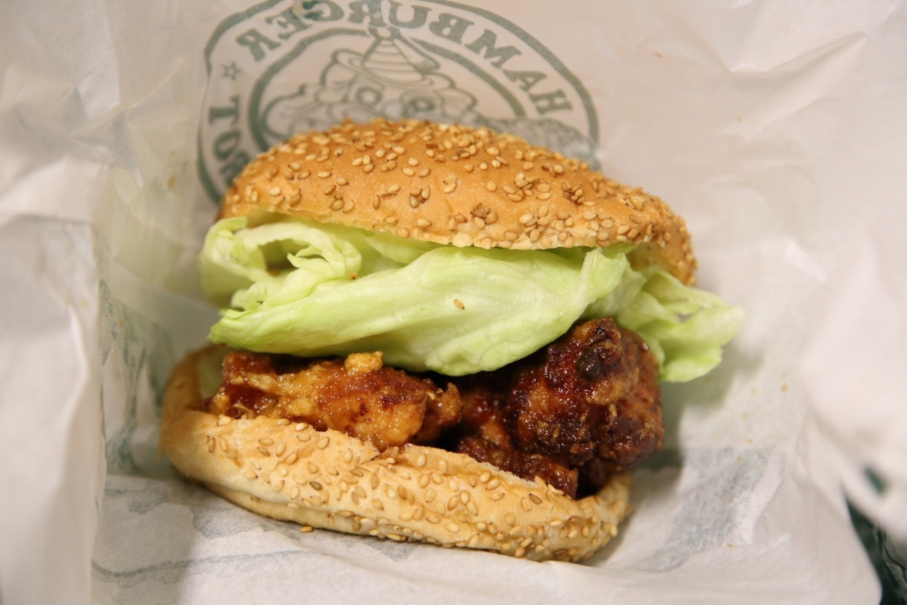 折角なので人気No.1のチャイニーズチキンバーガーと人気No.2のラッキーエッグバーガーをお願いしました。ボリュームがあると紹介されているのでマクドナルドより少し大きいくらいかな、と思っていましたが、想像よりもはるかに大きく、持つとズッシリとくるバーガーでした。味も良いのですが、出来立てを持ってきてくれるのでアツアツで、余計に美味しく感じました。