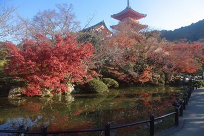四季を通じて素晴らしい景色を見られますが、特に紅葉の時期は素晴らしいです。本堂や子安塔の周り、音羽の滝へ下る階段、音羽の滝から舞台の下を通る道、西門や三重塔の下にある放生池の周りなど、見応えのある場所が沢山あります。今回は12月の訪問だったので残念ながら紅葉は終りかけでしたが、それでも十分に楽しめました。