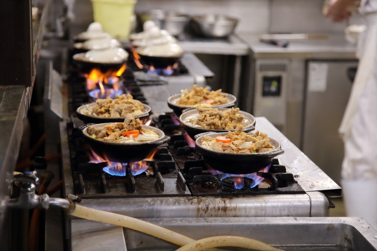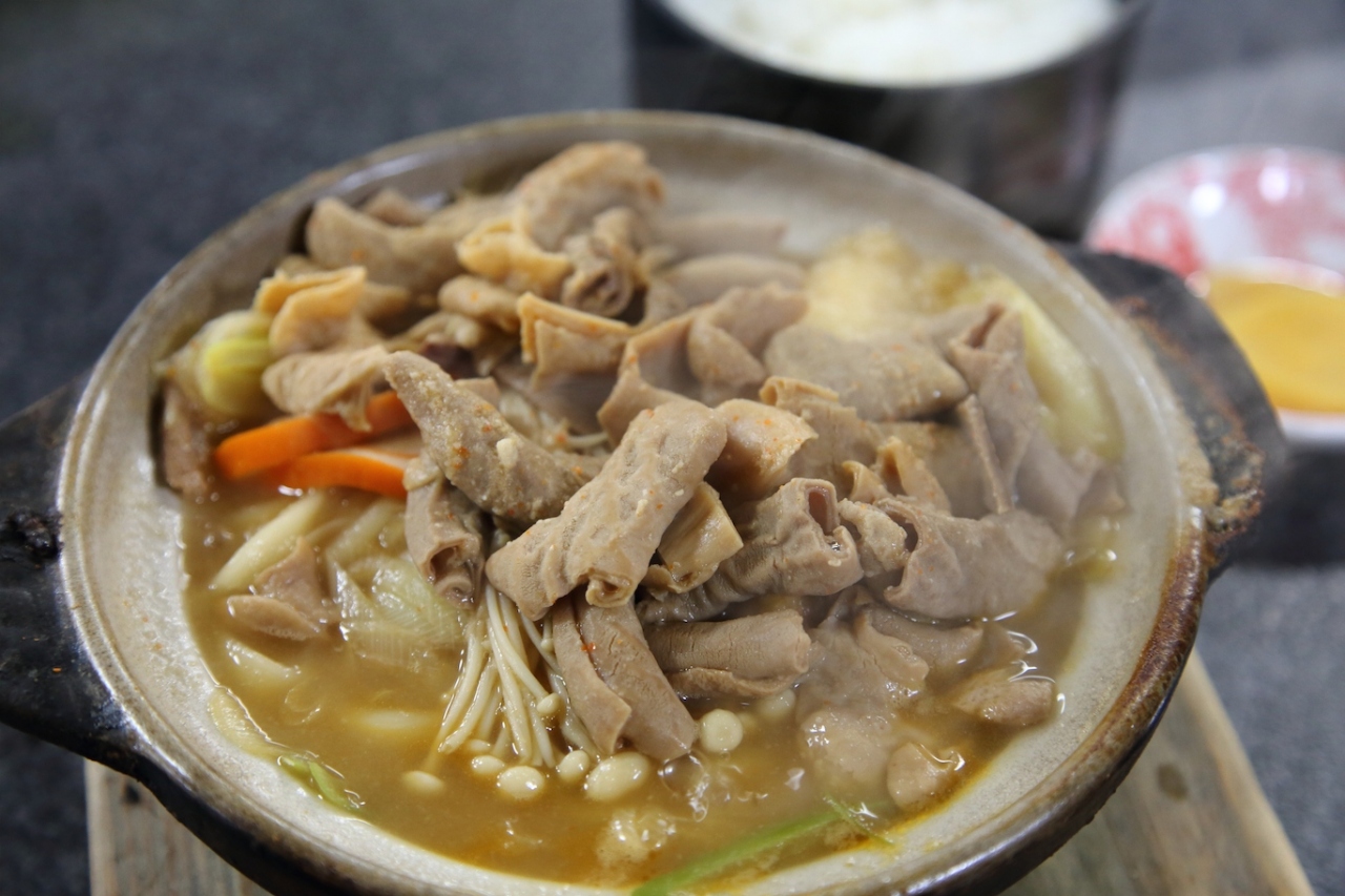 モツ煮込みうどんの元祖ということで、いつ行ってもお客さんが大行列しています。地元の方は良く知っているのか、持ち帰りのモツ煮込みうどんを購入されている方も多かったですね。店内は結構広く、中央の厨房をカウンターで囲み、その周りにテーブル席と座敷席が配置されている格好です。カウンターに座ると目の前で煮込みうどんを作っているところを見られるので、個人的にはカウンターがお勧めです。