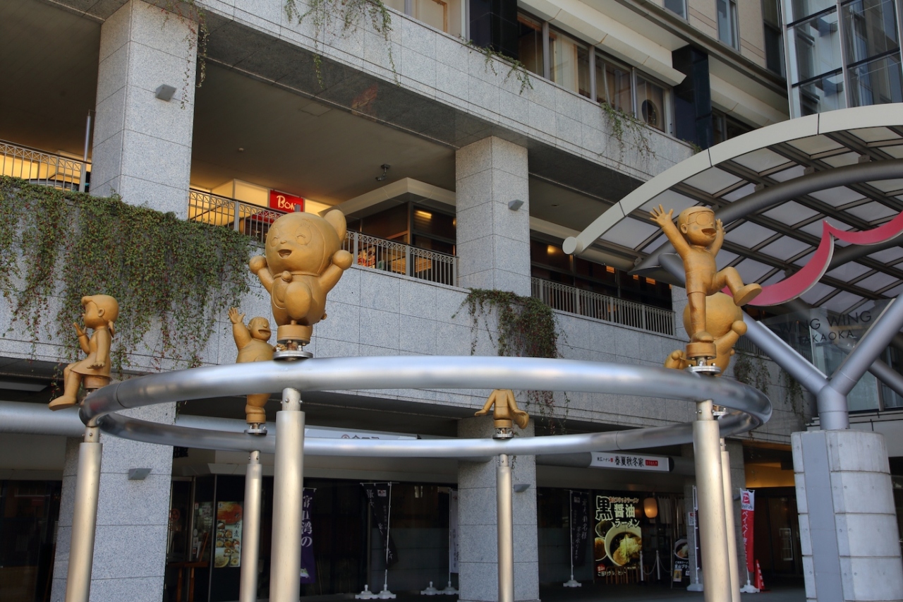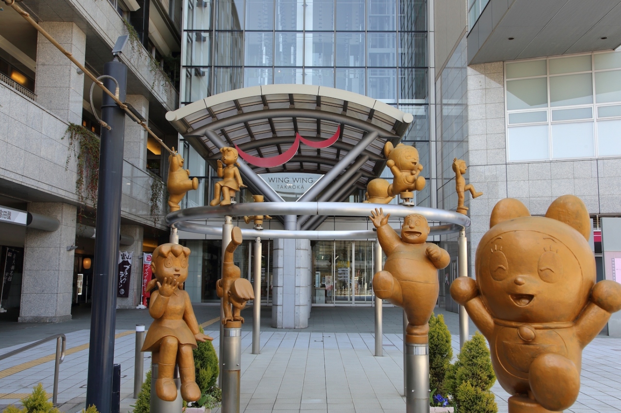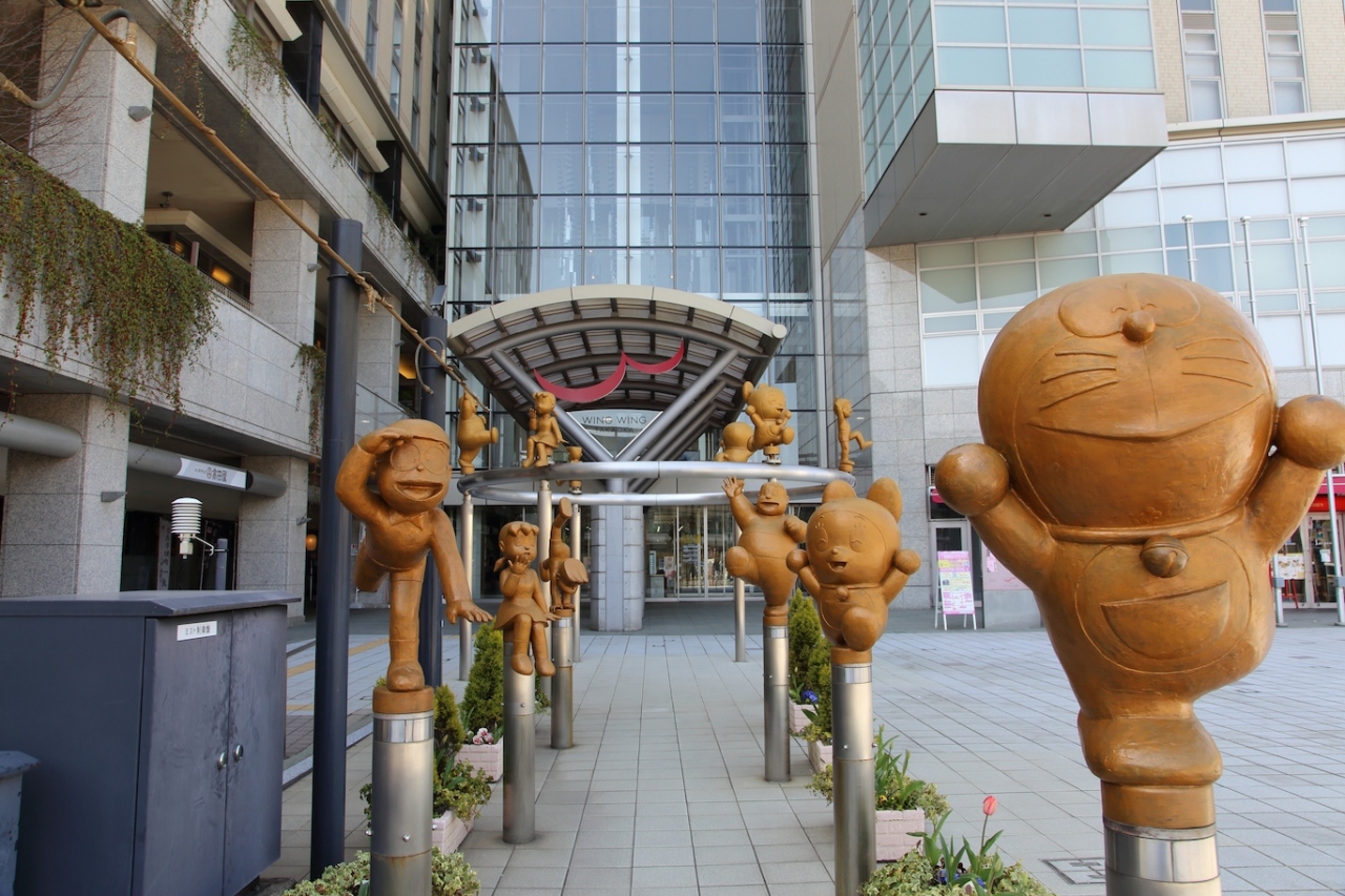 高岡駅北口にあるウィングウィング高岡の広場に設置されている歩道です。高岡銅器で作られたドラえもんのキャラクターたちが両脇に置かれ、お客さんを出迎えるように駅側を向いています。ドラえもんの作者である藤子・F・不二夫先生が高岡出身ということもあり、その縁で作られたもののようです。散歩道と言っても距離は物凄く短く、位置付けとしてはウィングウィング高岡へのプロムナードなのだと思います。ですから、子供と一緒に遊ぶ、という場所ではありません。子供と一緒に遊ぶなら新高岡駅の西にある高岡おとぎの森公園へ行かれると良いでしょう。