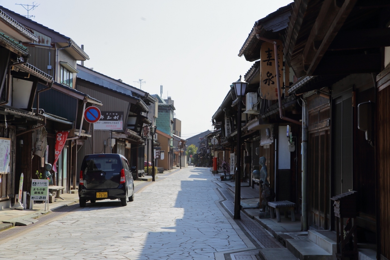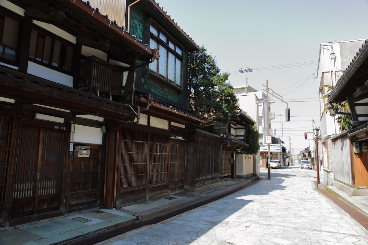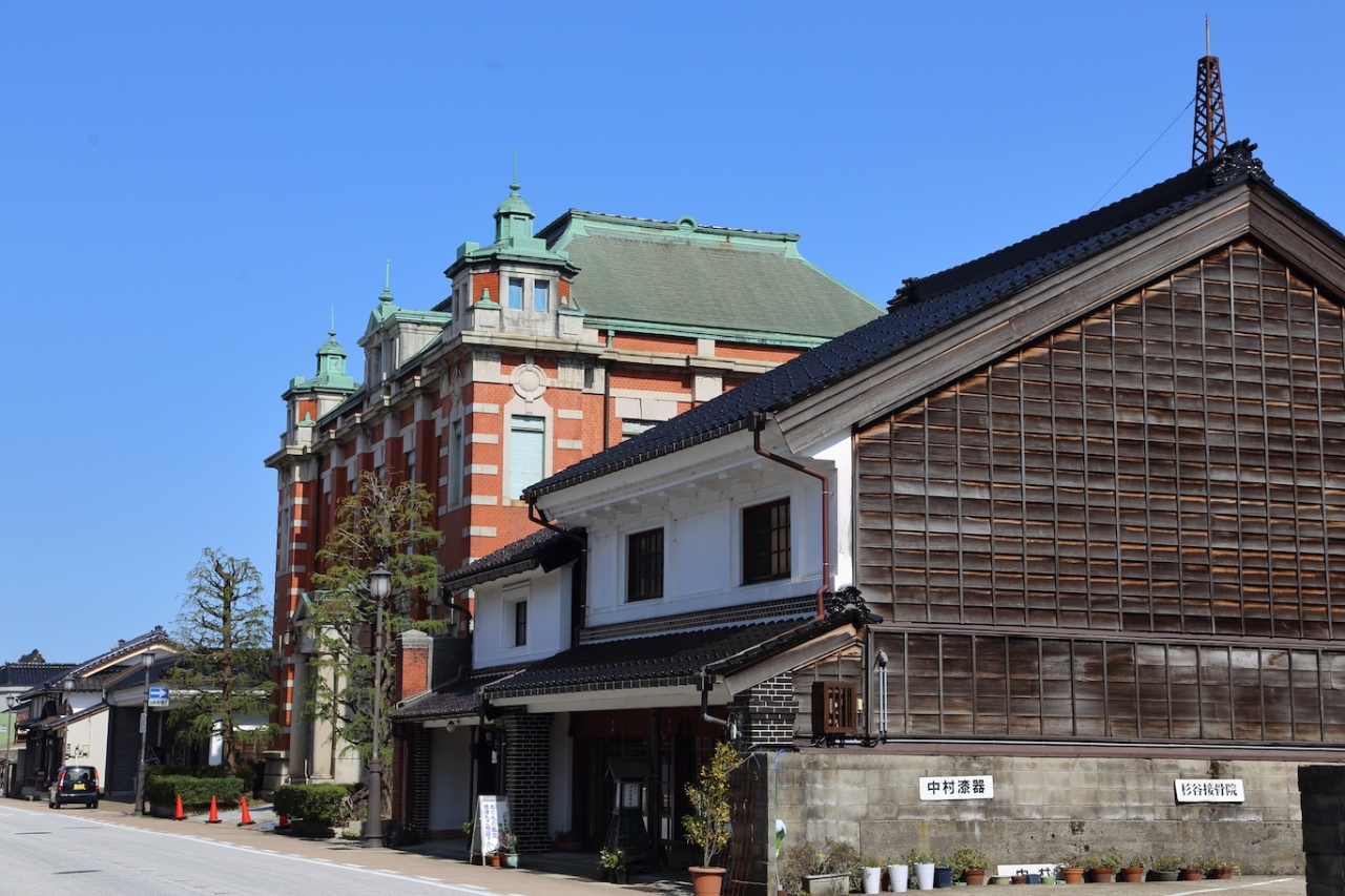 山町筋と同じく、高岡にある伝統的建造物群保存地区の1つです。千保川を渡った先にあるので、駅からは少し離れています。車で行かれる場合は千保川沿いにある金屋緑地公園に駐車場があるので、そちらを利用すると便利です。